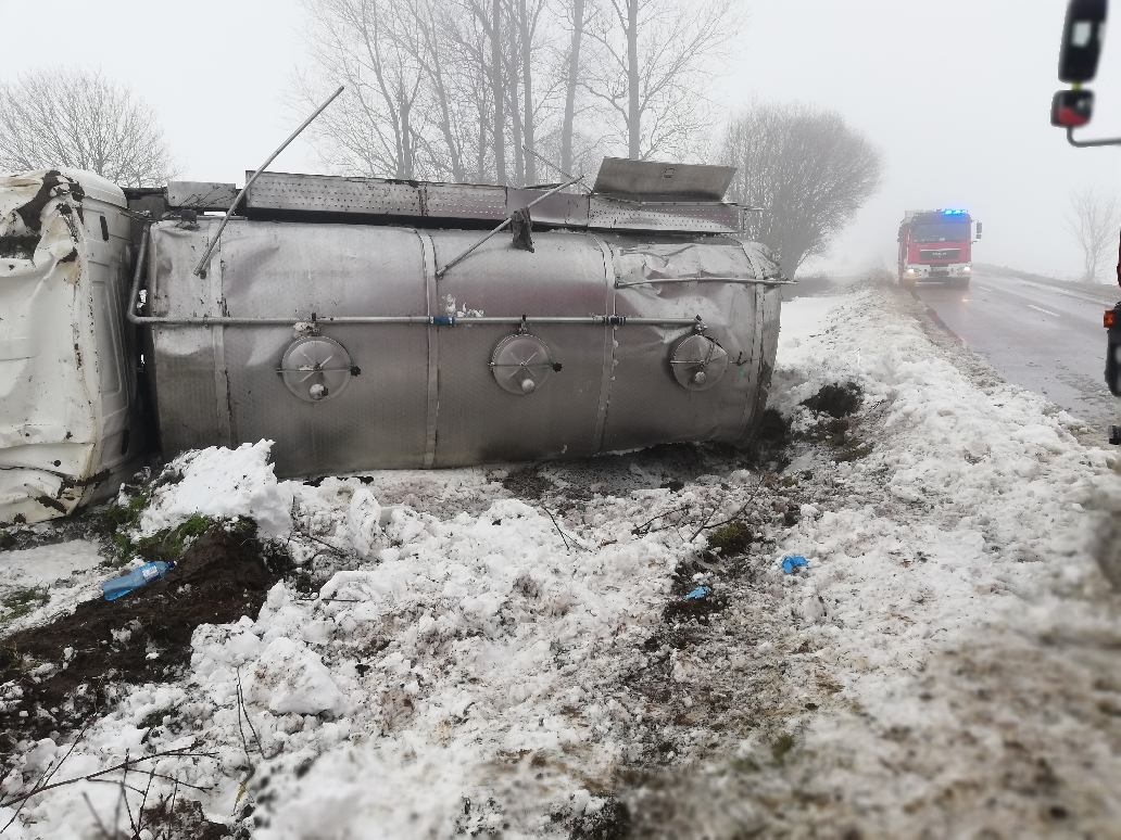 Do kolizji z udziałem samochodu przewożącego mleko doszło dziś po południu na trasie z Wysokiego Mazowieckiego do Ciechanowca, w okolicy miejscowości Kuczyn.
