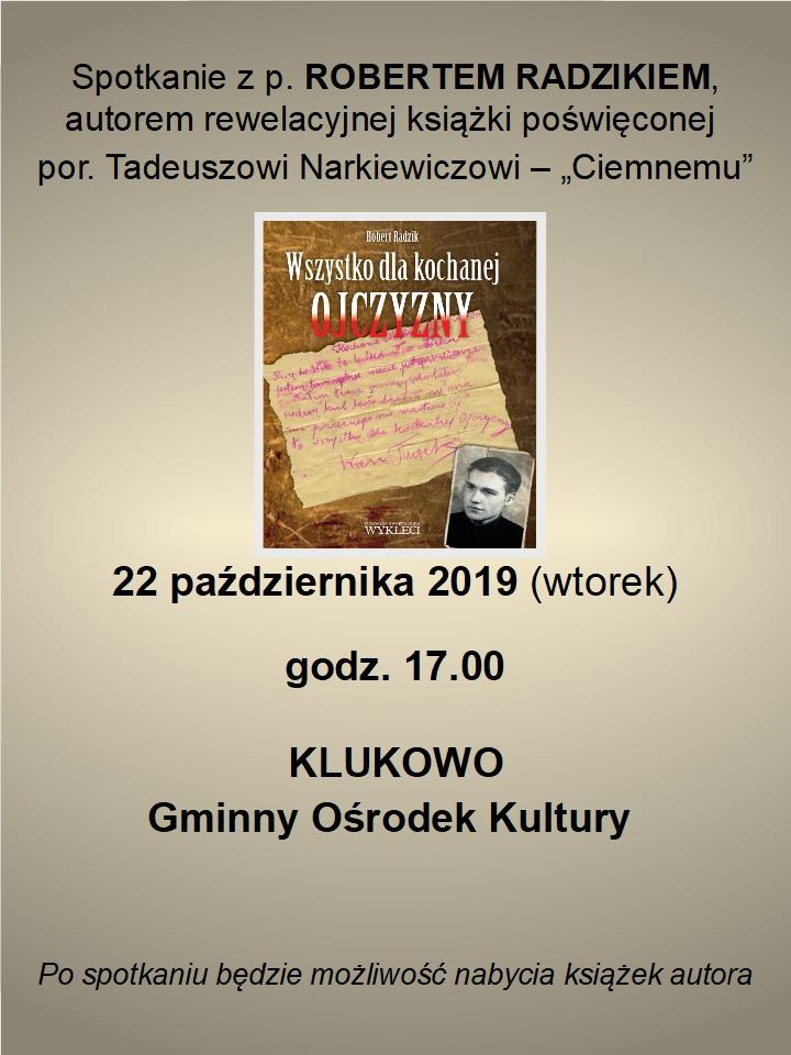 Dyrektor Gminnego Ośrodka Kultury zaprasza na spotkanie z Robertem Radzikiem, które odbędzie się we wtorek 22 października o godzinie 17:00 w GOKu.