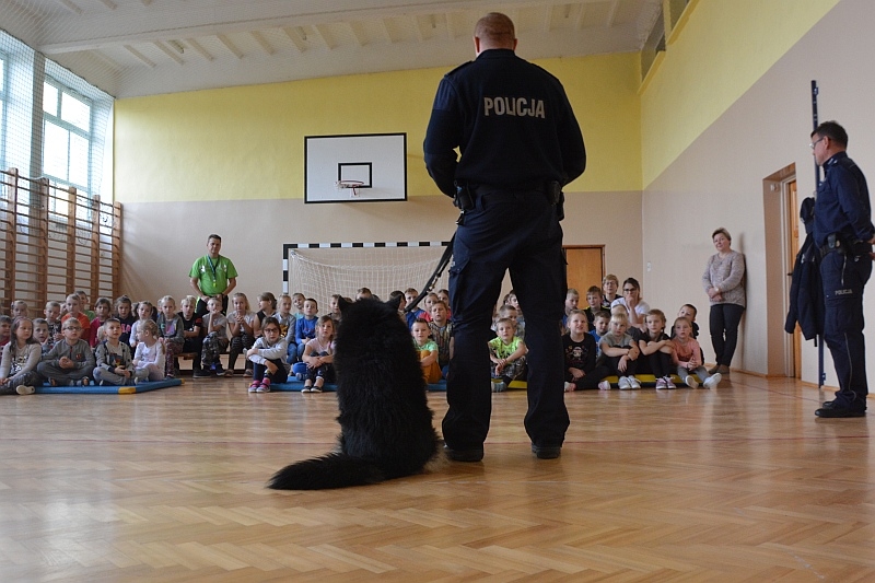 Wysokomazowieccy policjanci odwiedzili uczniów i przedszkolaków ze Szkoły Podstawowej w Klukowie. Funkcjonariusze uczyli dzieci podstawowych zasad bezpieczeństwa na drodze oraz prawidłowych zachowań w kontaktach z agresywnymi psami.