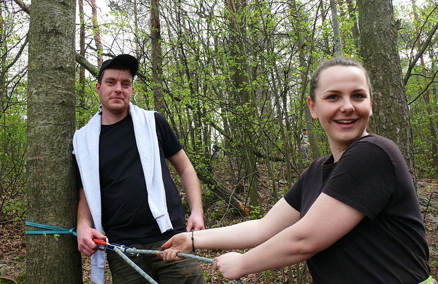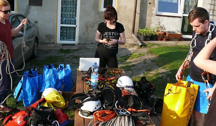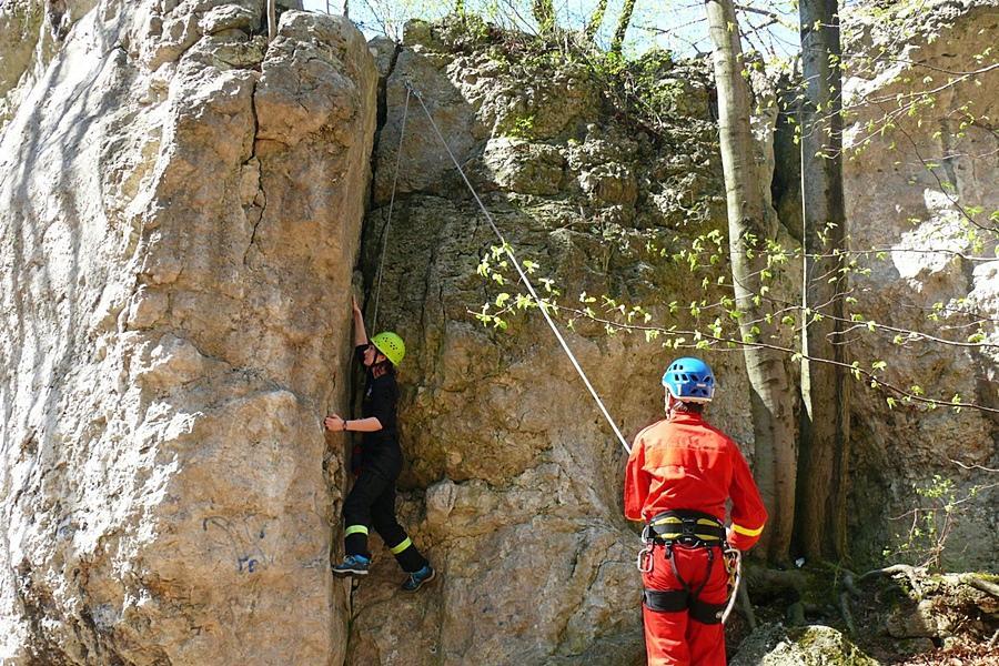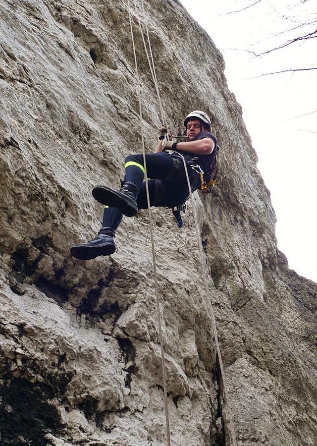 - Zjazdach po ścianie skalnej i poszukiwaniu przedmiotów w szczelinach,