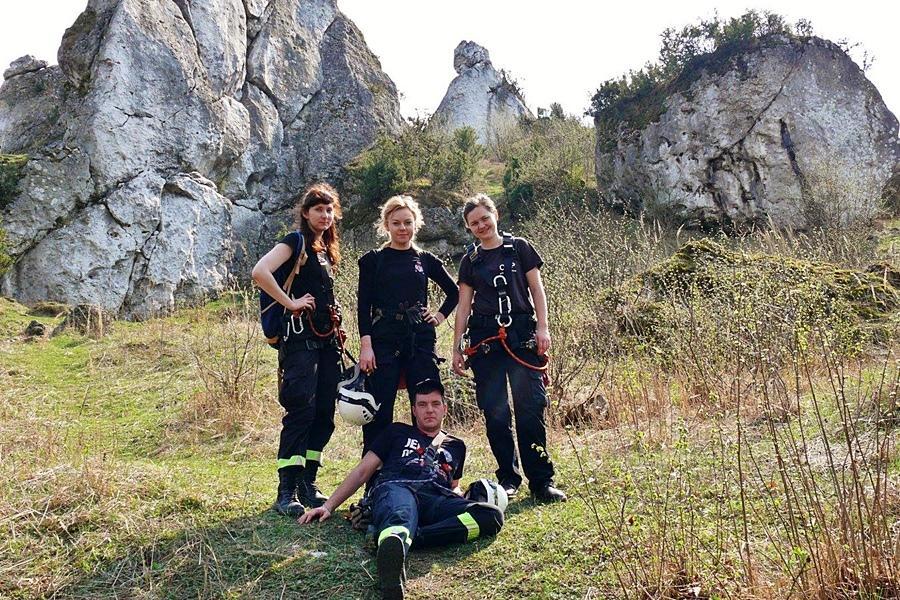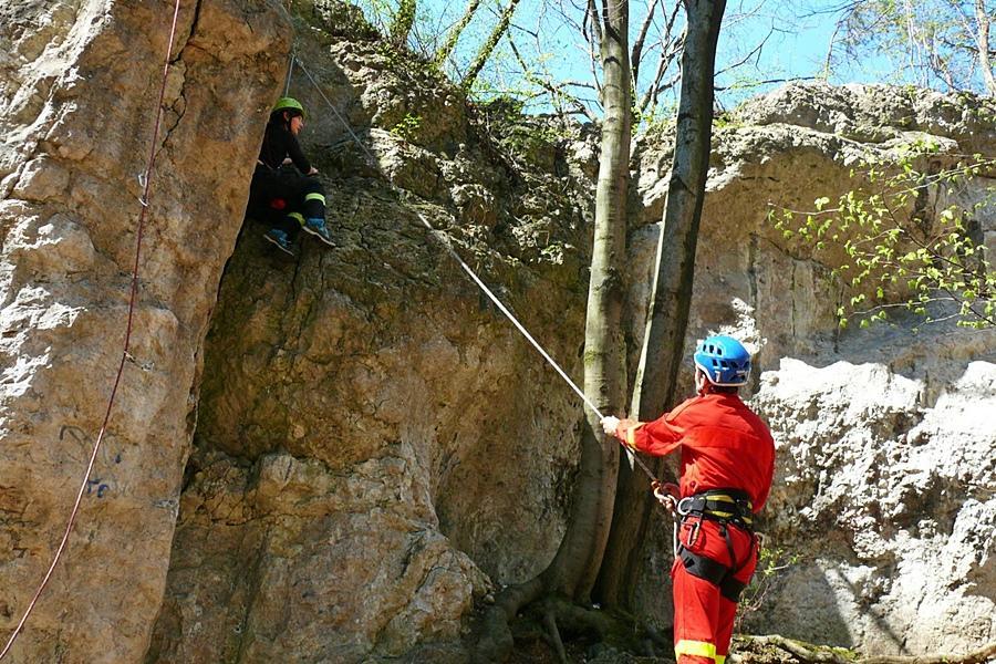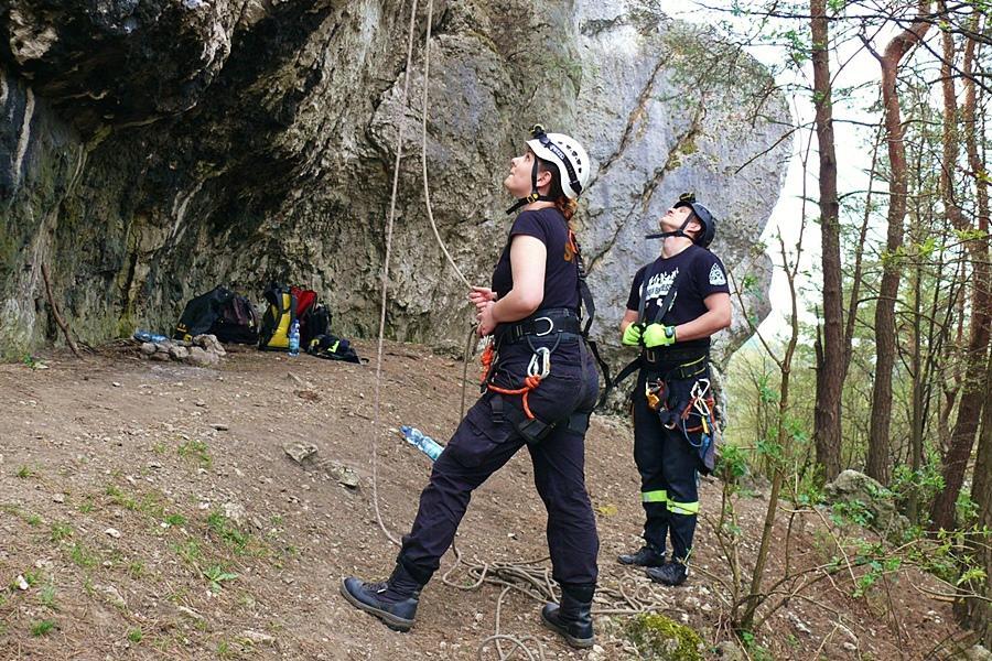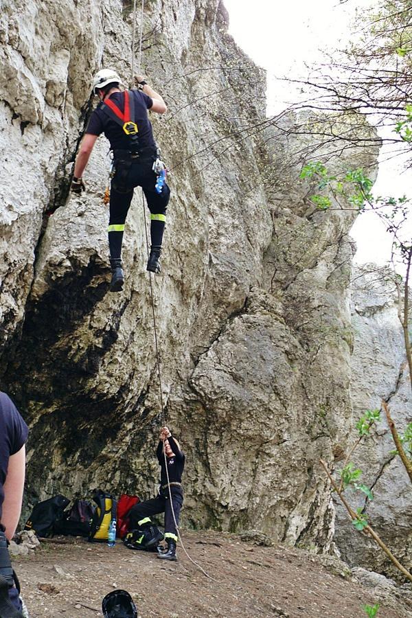 - Ewakuacji poszkodowanego ze skały przy użyciu technik linowych,
