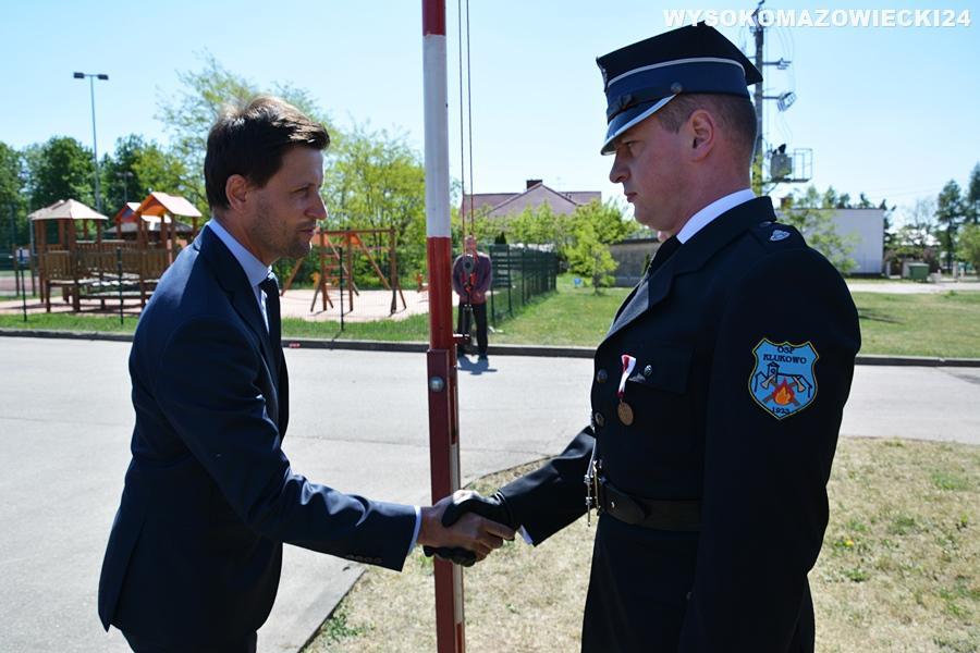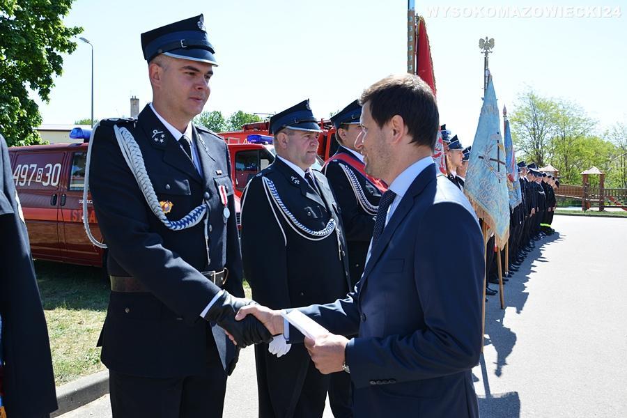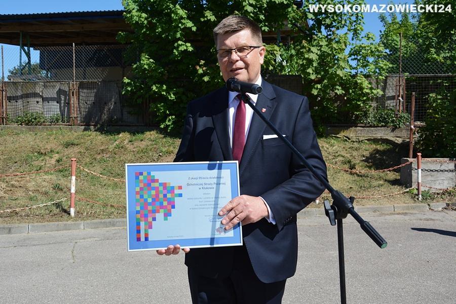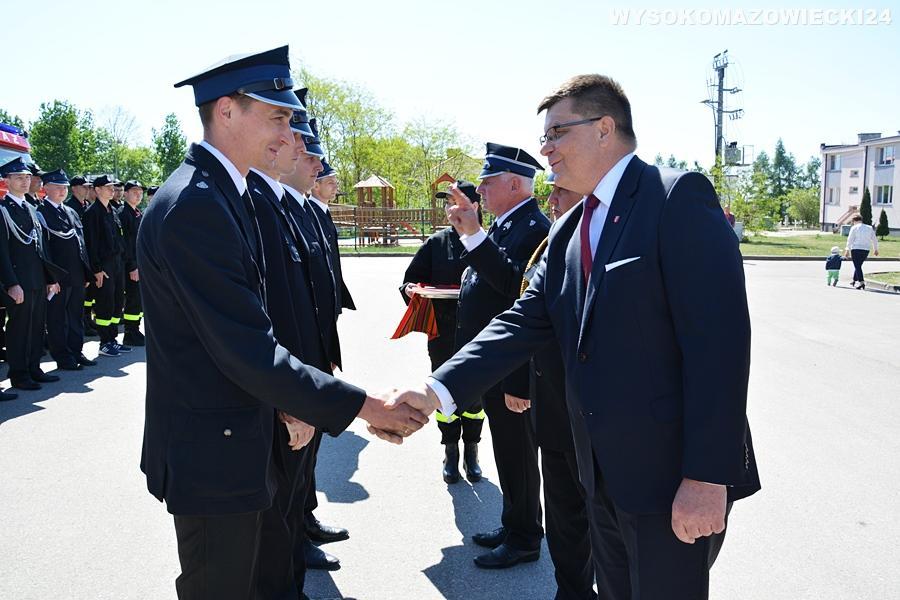 Brygadier Zbigniew Zalewski z Komendy Powiatowej Państwowej Straży Pożarnej w Wysokiem Mazowieckiem odczytał okolicznościowe listy od st. bryg. Andrzeja Koca – komendanta powiatowego Państwowej Straży Pożarnej w Wysokiem Mazowieckiem, a zarazem prezesa oddziału wojewódzkiego ZOSP RP w Białymstoku oraz st. bryg. Jarosława Wendta – podlaskiego komendanta wojewódzkiego PSP.