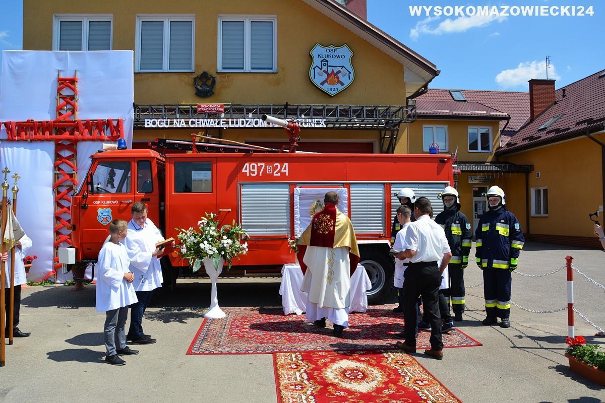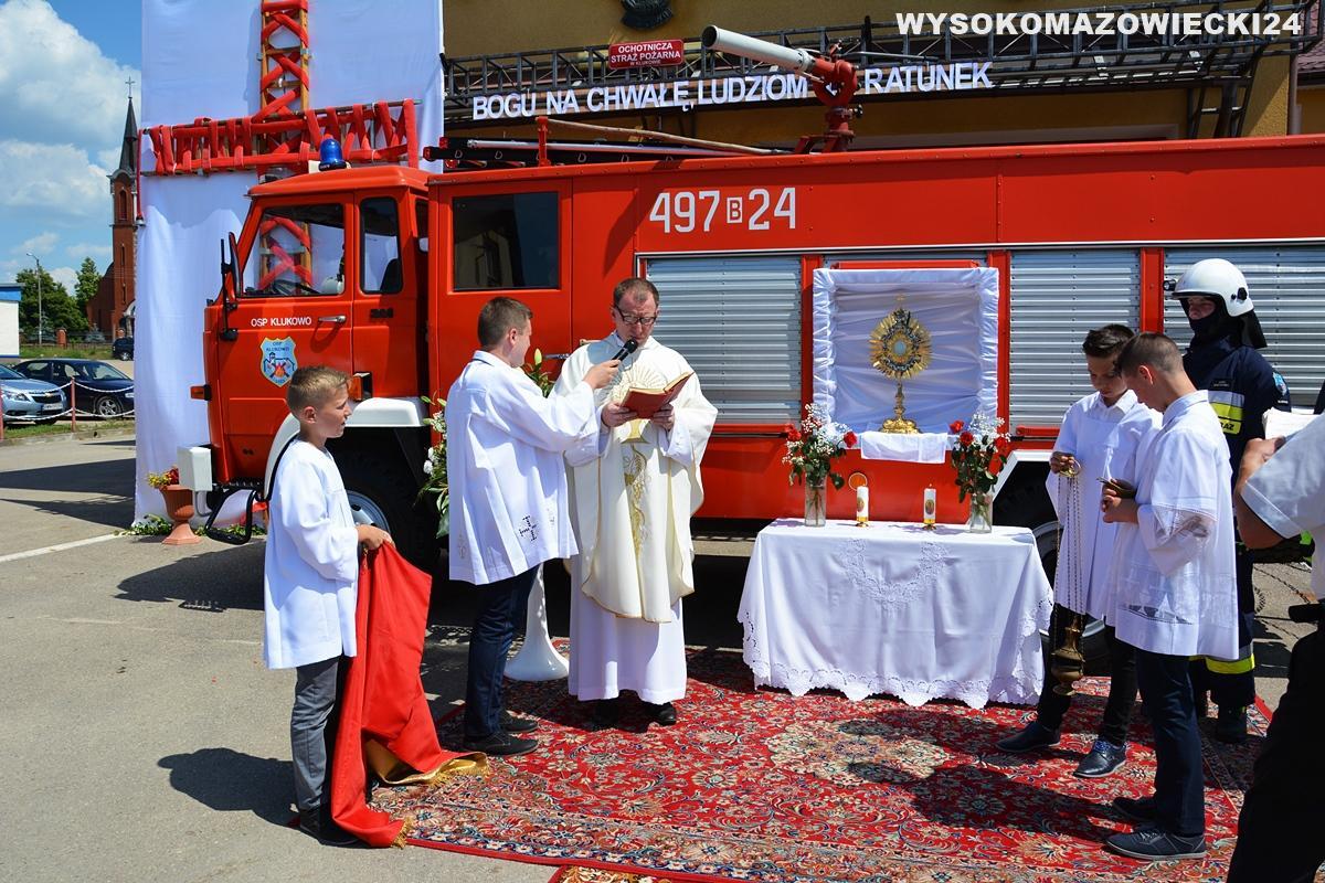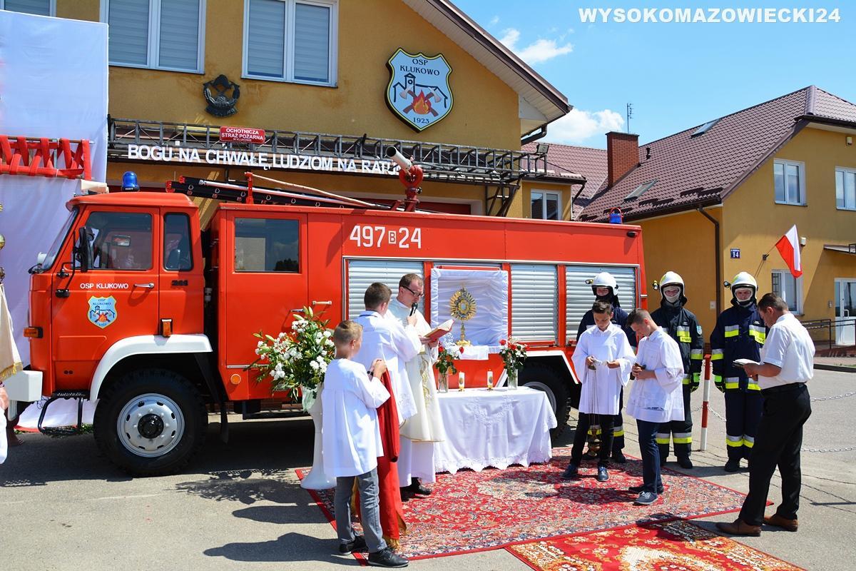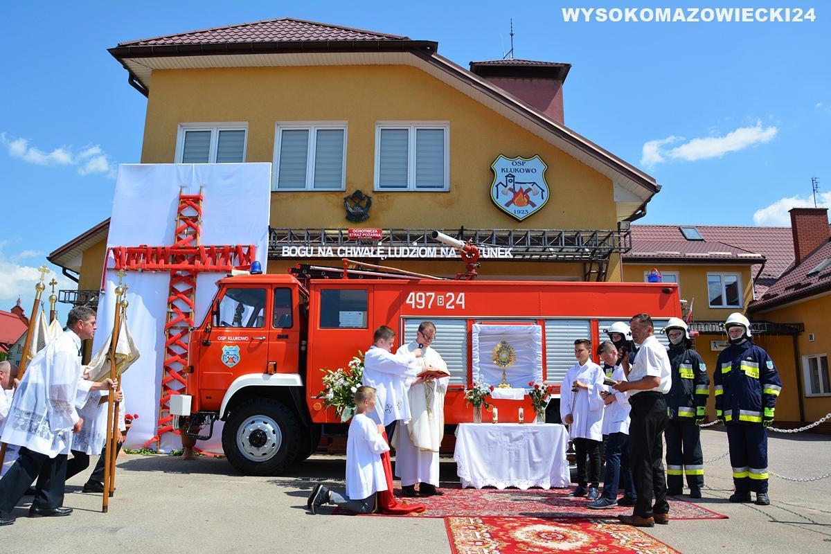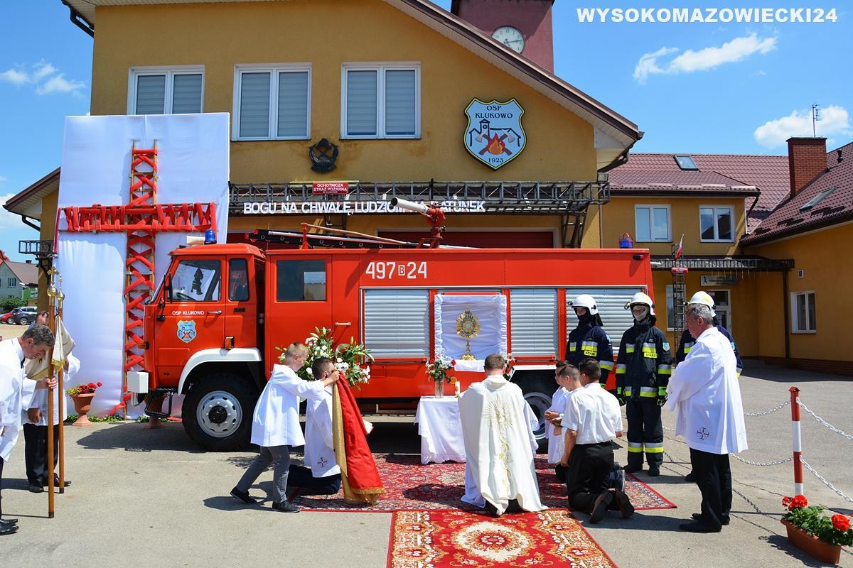 Tegoroczna procesja Bożego Ciała w Klukowie wyróżniła się niezwykłym ołtarzykiem, przygotowanym przez lokalnych strażaków. Monstrancja umieszczona została w wozie należącym do OSP KSRG Klukowo, a asystowali strażacy w strojach bojowych.