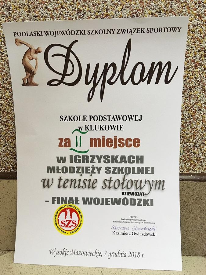 7 grudnia 2018 roku w Wysokiem Mazowieckiem odbył się Finał Wojewódzki Igrzysk Młodzieży Szkolnej w Drużynowym Tenisie Stołowym.