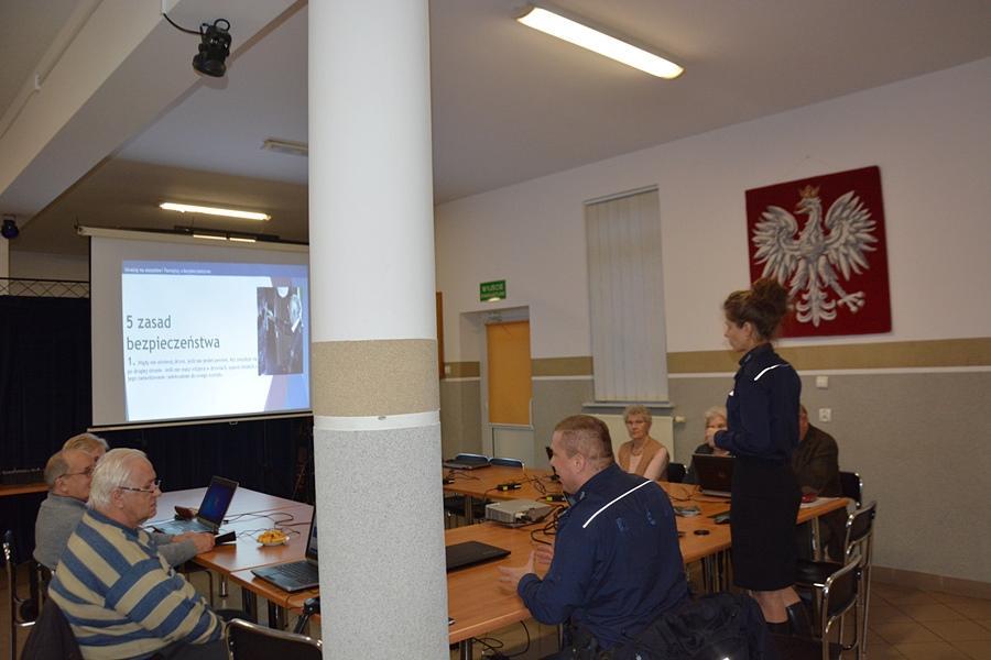 Funkcjonariusze uczulali, że należy być podejrzliwym, także w sytuacji, gdy ktoś zasłaniając się pośpiechem ponagla do szybkiej wypłaty i przekazywania nieznajomym środków pieniężnych. Podczas spotkania poruszone zostały także kwestie bezpieczeństwa na drogach, a w szczególności poprawa widoczności osób pieszych po zmroku, poprzez noszenie elementów odblaskowych.