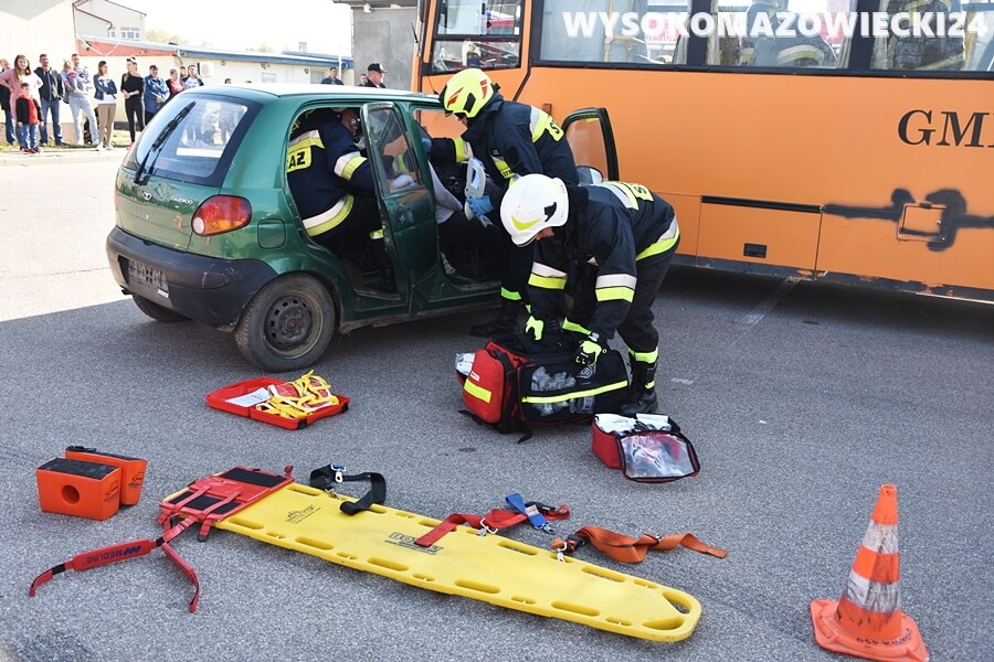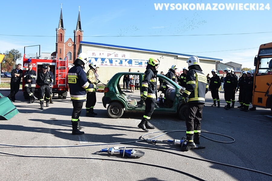 Podczas pokazów prezentowane były ćwiczenia na wzór realnych zgłoszeń wypadku samochodu osobowego z autobusem, którym podróżowało kilka osób oraz pożar budynku Urzędu Gminy z uwięzionymi osobami w środku.