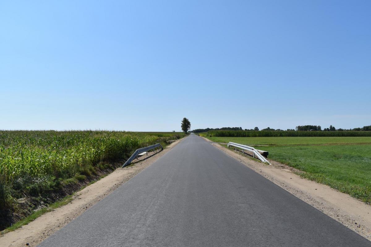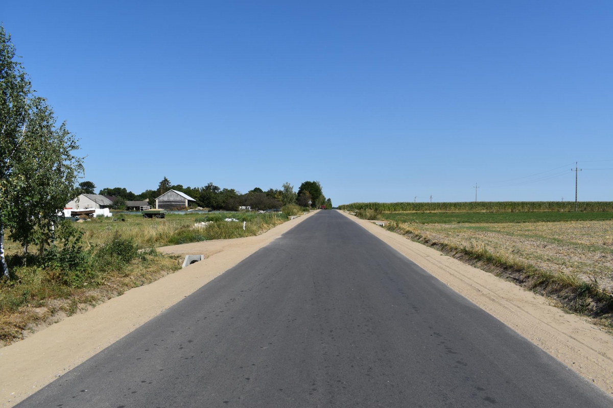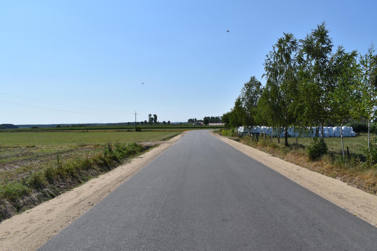 W ramach przedmiotowego zadania na drodze o długości 2,638 km zostały zrealizowane następujące prace: wykonanie robót ziemnych, wykonanie wzmocnienia podbudowy kruszywem łamanym 0/31,5 stabilizowanym mechanicznie, wykonanie nawierzchni z m.m.a. gr. 4+4 cm, wykonanie nawierzchni bitumicznej na zjazdach na dr. gminnych, wykonanie renowacji rowów przydrożnych, wykonanie nawierzchni żwirowej na zjazdach gospodarczych, wykonanie oznakowania pionowego. Droga otrzymała następujące parametry techniczne: klasa drogi – lokalna „L”, - prędkość projektowa 50 km/godz., obciążenie ruchem – KR1, przekrój poprzeczny – szlakowy, szerokość jezdni – 5,0 m, szerokość poboczy – 2 x 1,5 m.