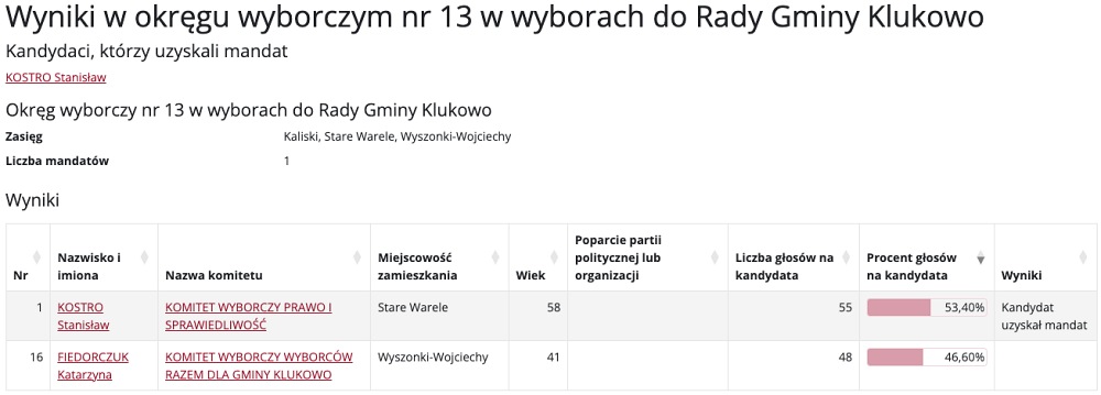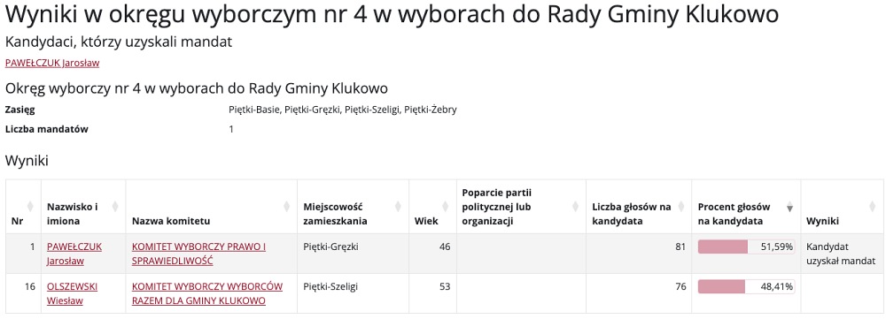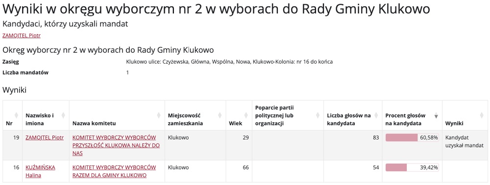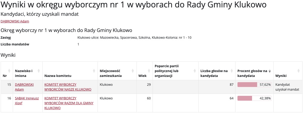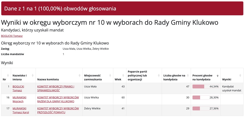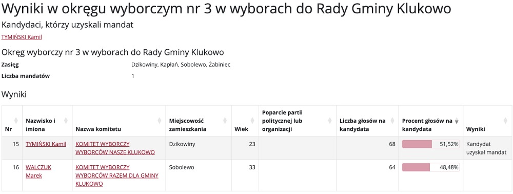 Wybory do Rady Gminy Klukowo przyniosły mieszkańcom nowych przedstawicieli w różnych okręgach wyborczych. Poniżej prezentujemy szczegółowe wyniki głosowania, które wyłoniły nowych radnych.