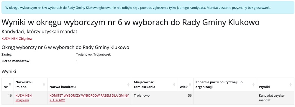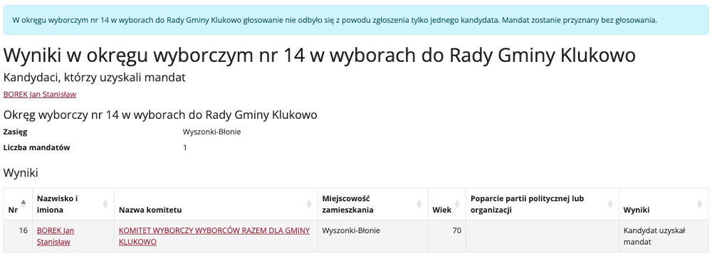 Wyniki w wyborach do Rady Gminy Klukowo
