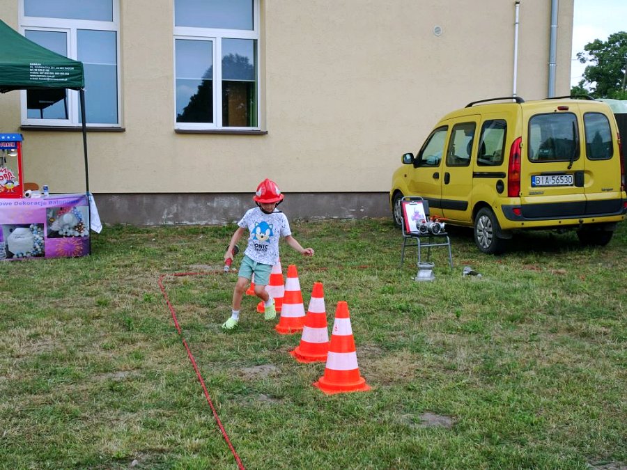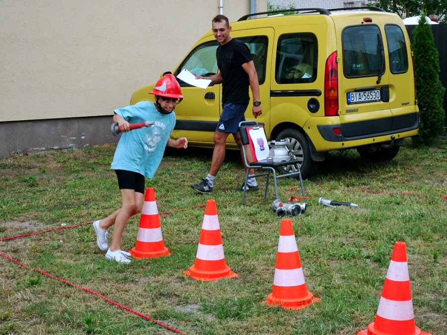 Uczestnicy rywalizacji otrzymali nagrody od druhów, a dzieci i młodzież wykazały się dużym zaangażowaniem podczas pokonywania toru przeszkód.