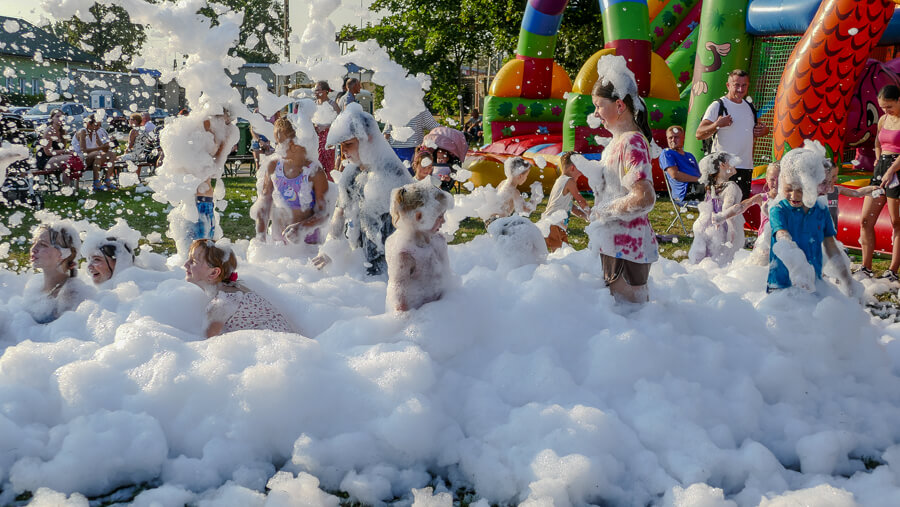 Festyn rozpoczął się o godzinie 14:00, oferując szereg atrakcji dla uczestników w każdym wieku. Największym hitem wśród najmłodszych okazało się "Piana Party", zapewniające ochłodę i mnóstwo radości w letni dzień. Dzieci mogły również korzystać też z dmuchańców i uczestniczyć w specjalnie przygotowanych animacjach.
