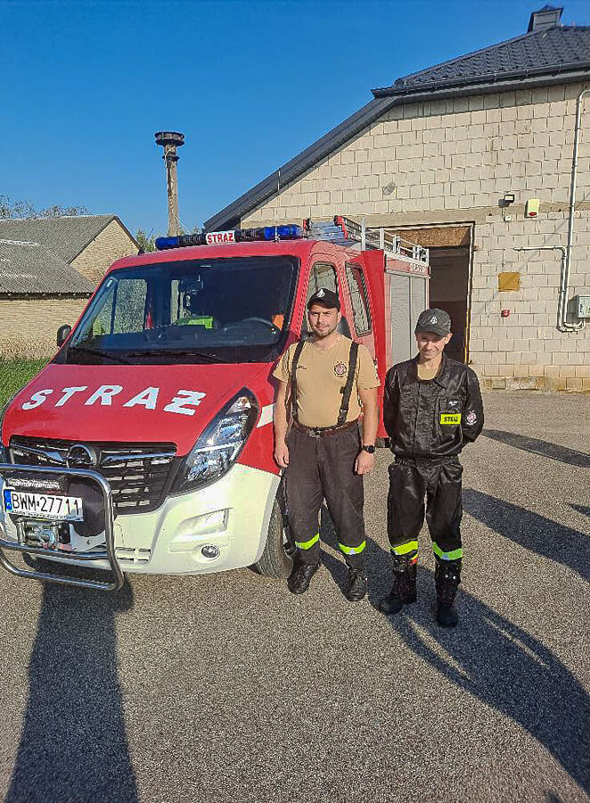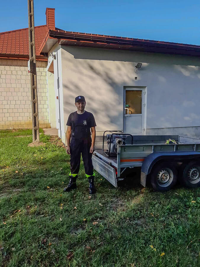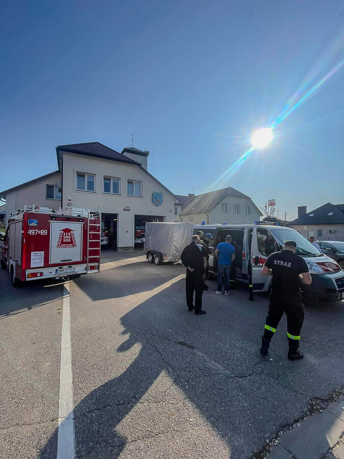 Strażacy wyrażają wdzięczność firmie PHU Duszyk z Koców Borowych za wsparcie akcji. Szczepan Niemyjski, właściciel firmy, przekazał sprzęt niezbędny do pracy strażaków oraz dary dla osób dotkniętych powodzią.