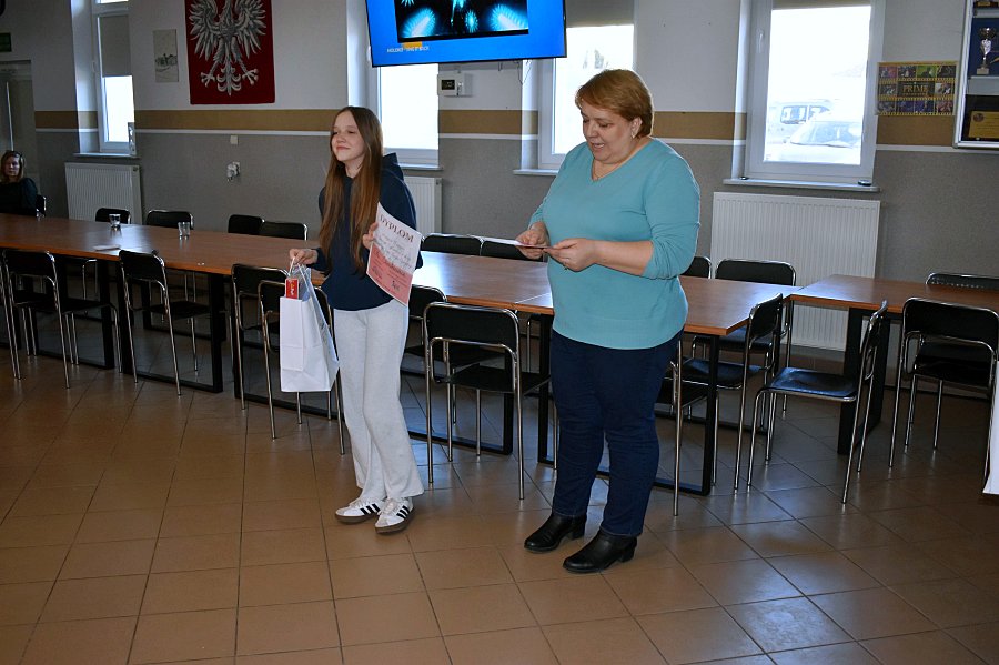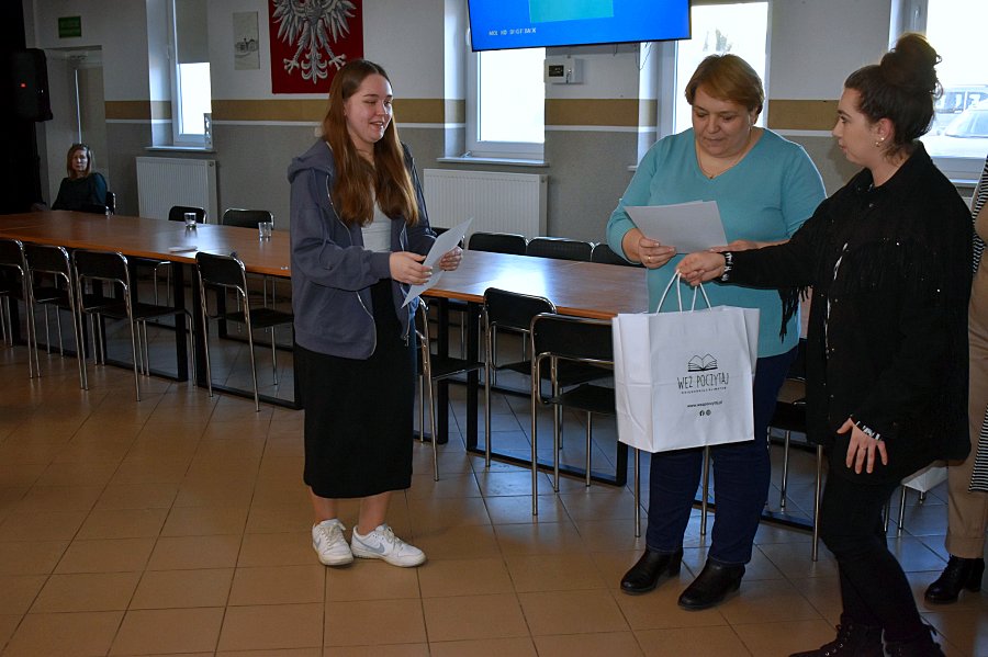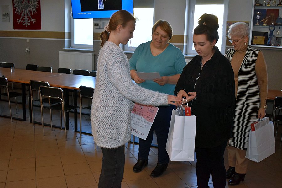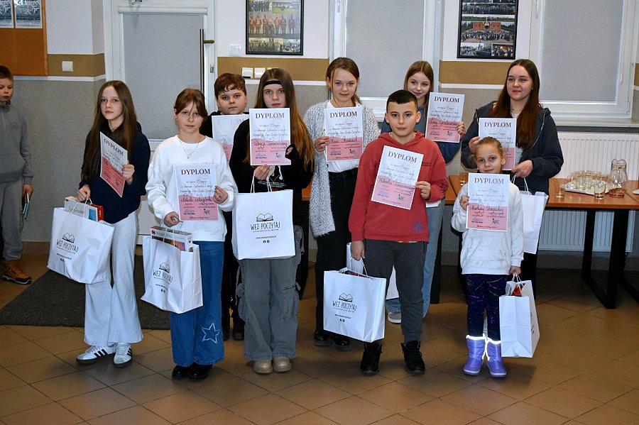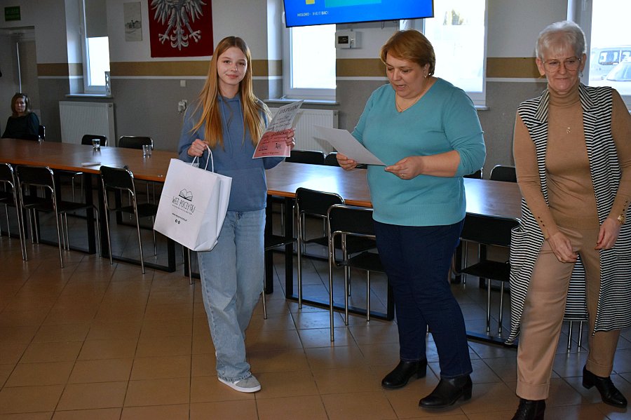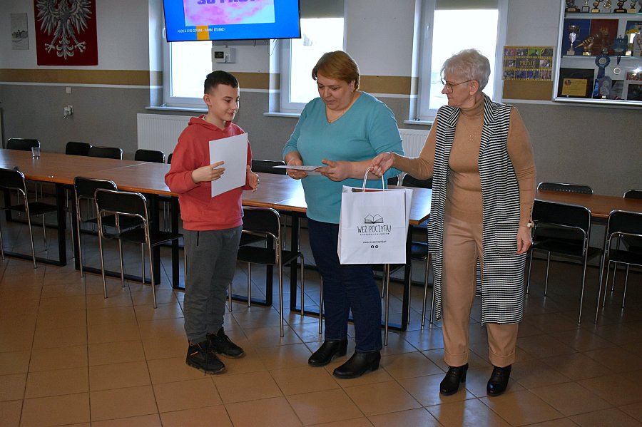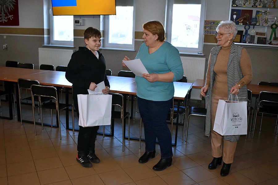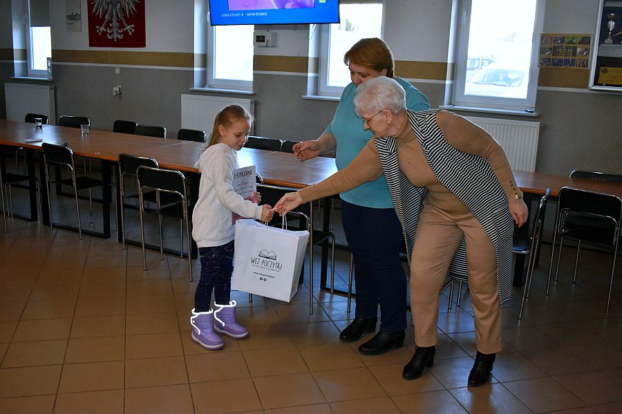 Organizatorzy zadbali o to, by każdy uczestnik został doceniony - wszyscy otrzymali upominki, a laureaci dodatkowo pamiątkowe dyplomy. W sprawnym przeprowadzeniu konkursu pomogli bibliotekarze oraz opiekunowie uczniów. O słodki poczęstunek zadbało Koło Gospodyń Wiejskich PODSĘDKOWIANKI.
