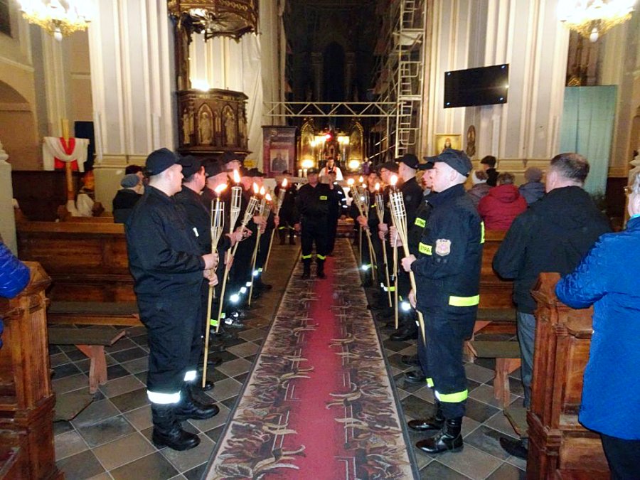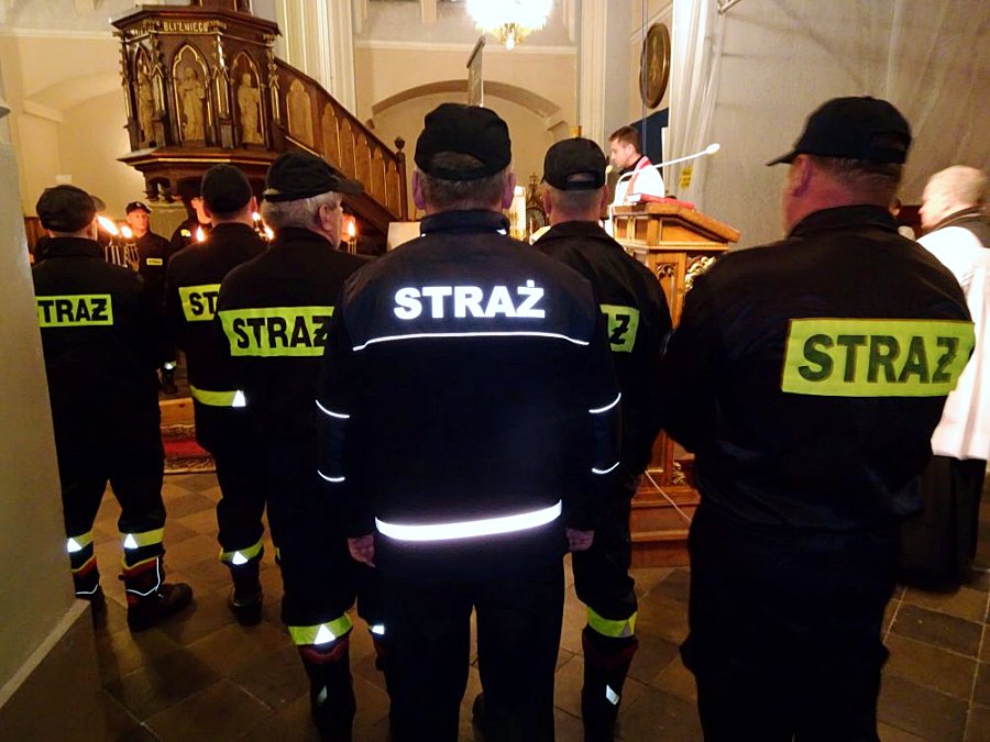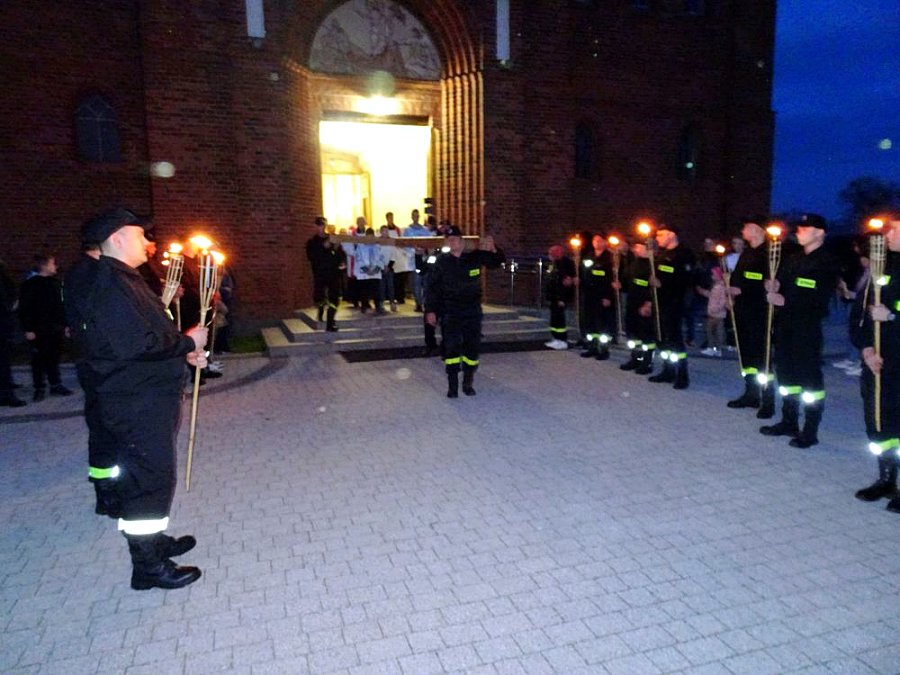 Strażacy czuwali nad sprawnym przebiegiem procesji, zabezpieczając trasę i dbając o porządek podczas przemarszu wiernych między Kuczynem a Gródkiem.