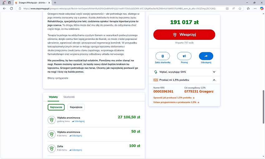 Jednak największa wdzięczność należy się wszystkim mieszkańcom, którzy wzięli udział w akcji i wsparli zbiórkę na rzecz Grzegorza Mikołajczyka. Dzięki ich hojności i otwartości serc udało się zebrać kwotę, która pomoże w dalszym leczeniu i rehabilitacji potrzebującego.