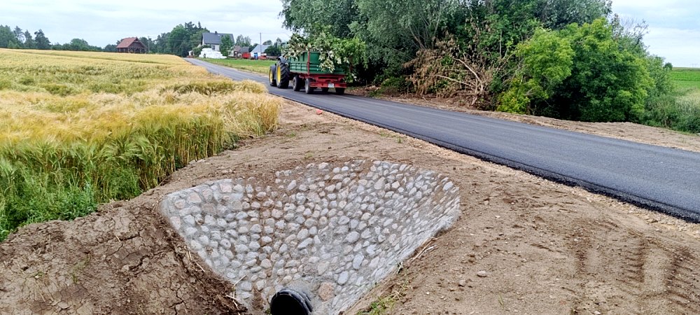 W najbliższym czasie planowane jest dokończenie prac wykończeniowych. Wykonawcy przygotują pobocza z kruszywa C50/30, które zapewnią odpowiednie odwodnienie drogi i bezpieczne zjechanie z głównej nawierzchni. Powstaną również zjazdy na drogi boczne wykonane z mieszanki mineralno-asfaltowej, co ułatwi dostęp do posesji i dróg lokalnych.