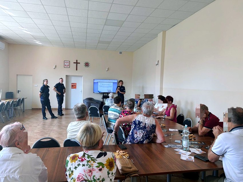 Policjanci spotkali się z seniorami z miejscowości Kobylin-Borzymy. Spotkanie dotyczyło szeroko pojętego bezpieczeństwa osób starszych oraz bezpiecznych zachowań podczas grzybobrania w lesie.