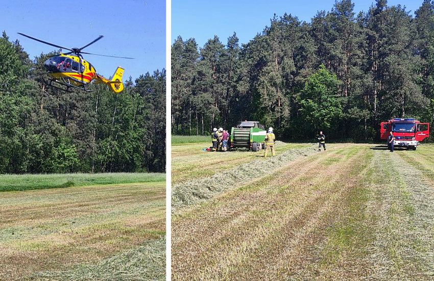 W miejscowości Piszczaty-Kończany, gmina Kobylin-Borzymy, doszło do poważnego wypadku podczas prac polowych. Ręka rolnika utknęła w mechanizmie maszyny, co spowodowało konieczność interwencji strażaków oraz Lotniczego Pogotowia Ratunkowego.