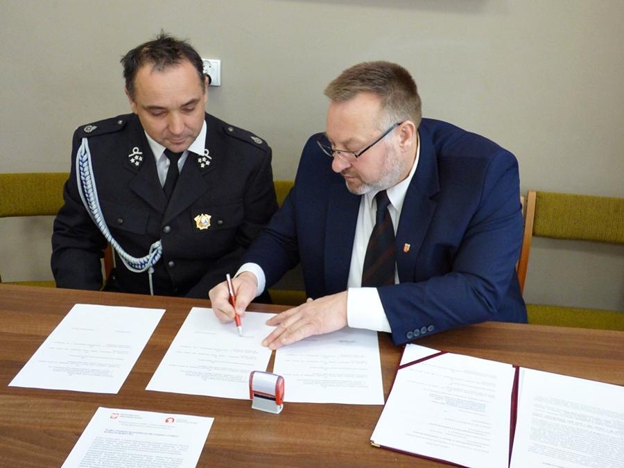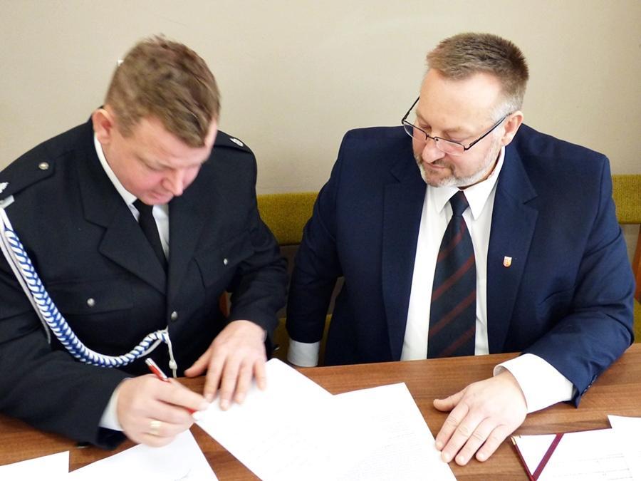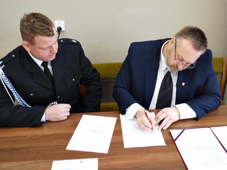 W trakcie spotkania podpisano umowy użyczenia jednostkom OSP sprzętu zakupionego przez Gminę Kobylin-Borzymy w ramach środków z Funduszu Sprawiedliwości.
