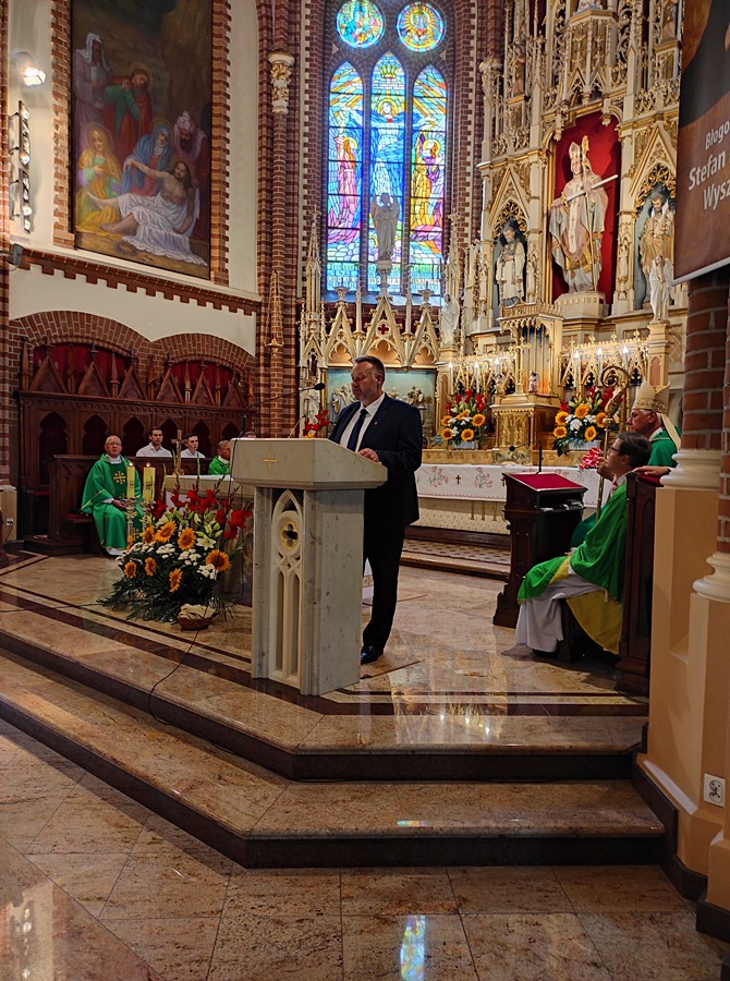 Przed rozpoczęciem mszy św. zostały poświęcone figury Świętych Apostołów Piotra i Pawła, umieszczone na frontonie świątyni.