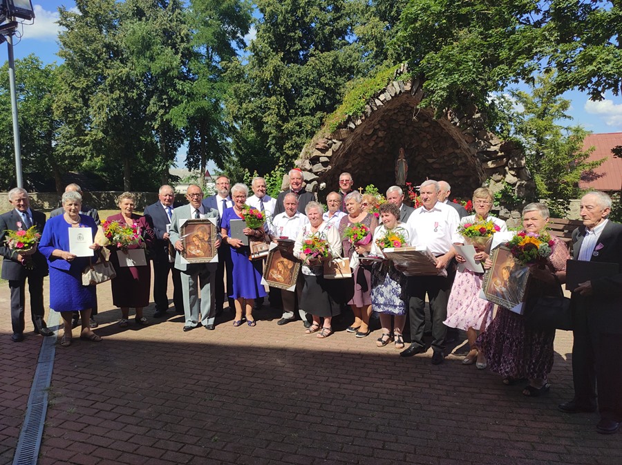 Jubilatom wręczono pamiątkowe dyplomy, kwiaty oraz obrazy Świętej Rodziny.