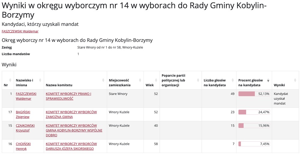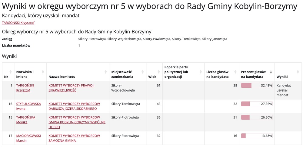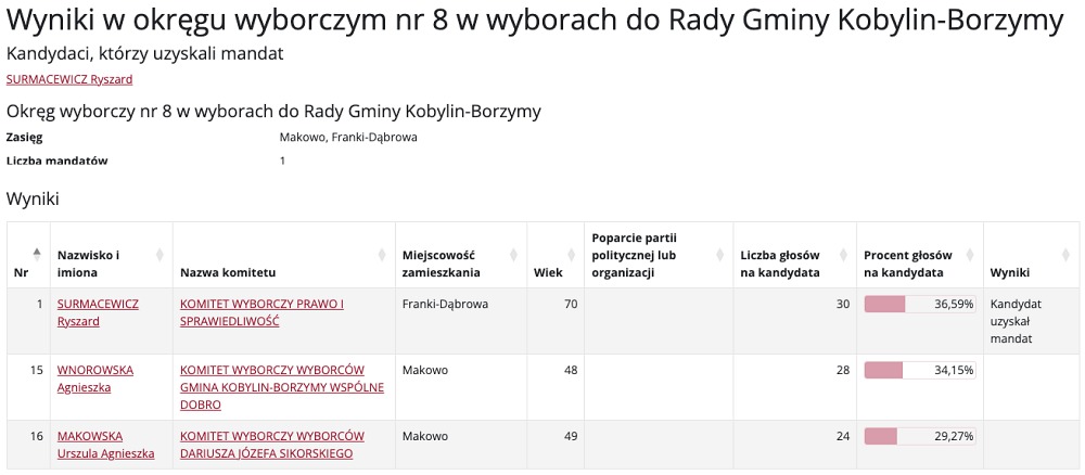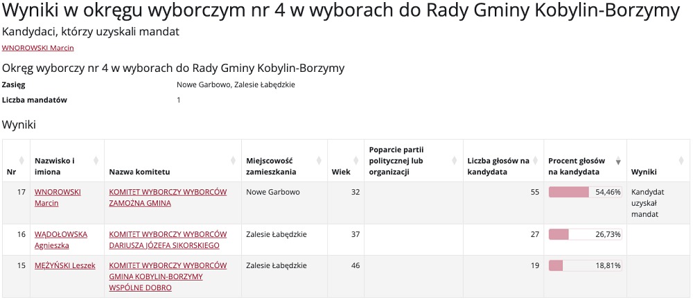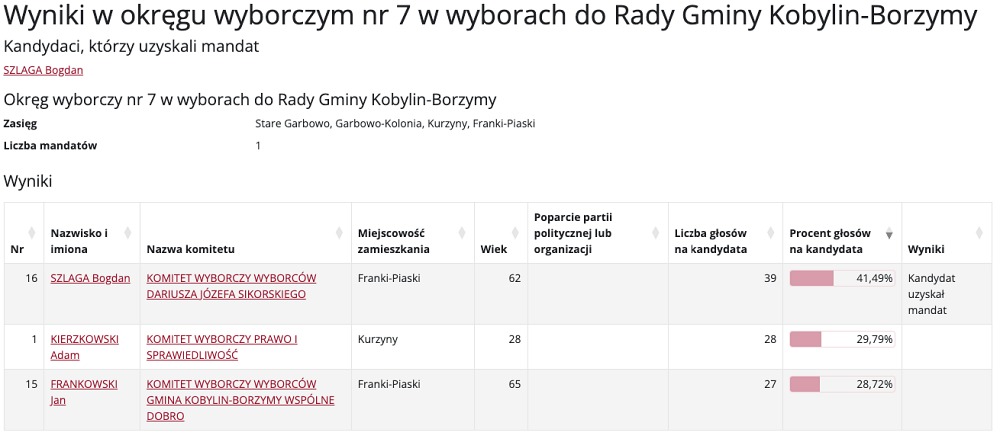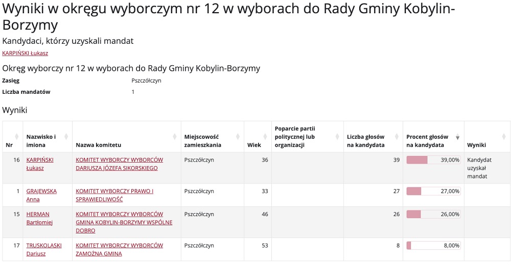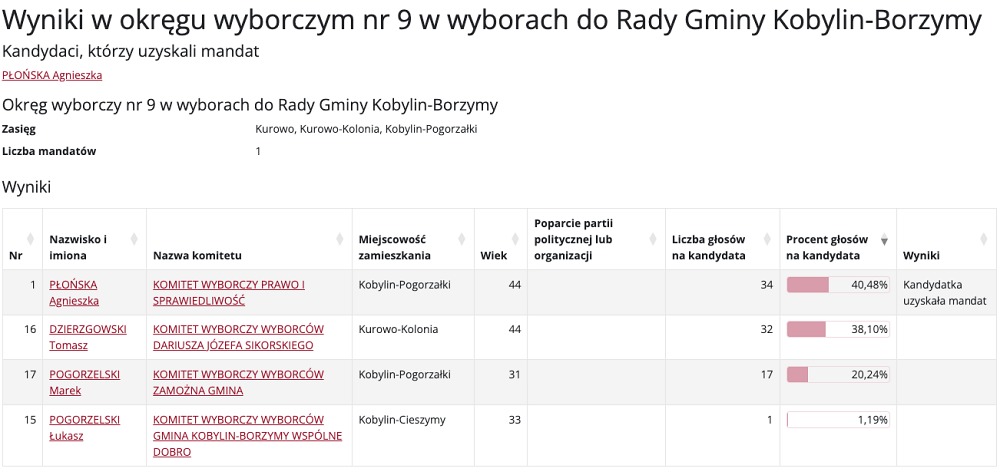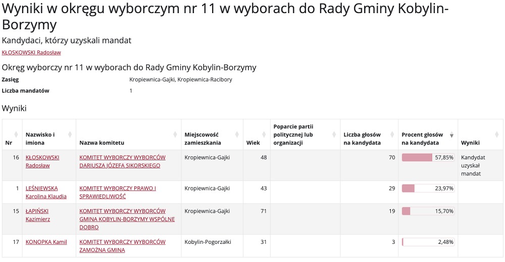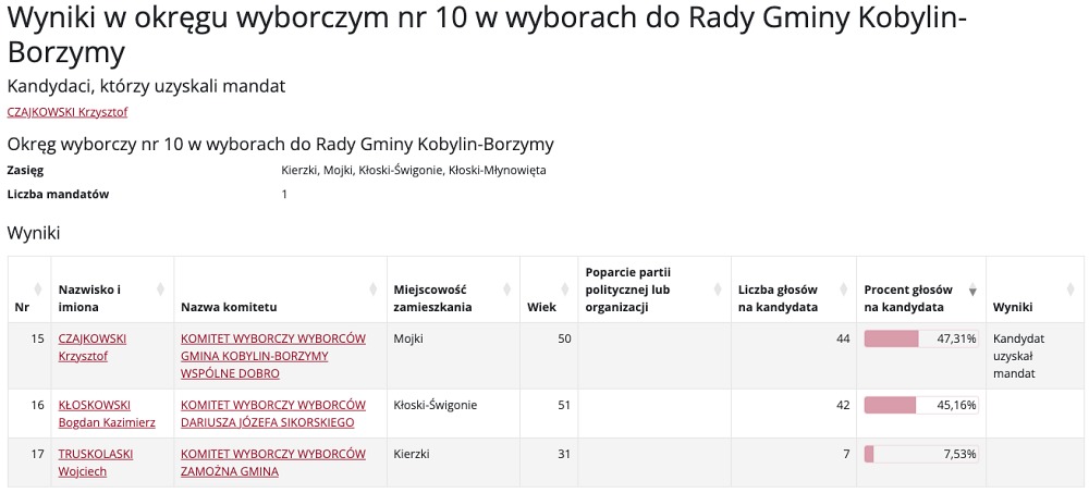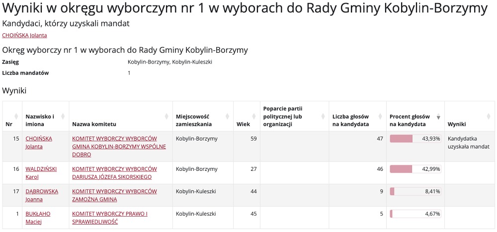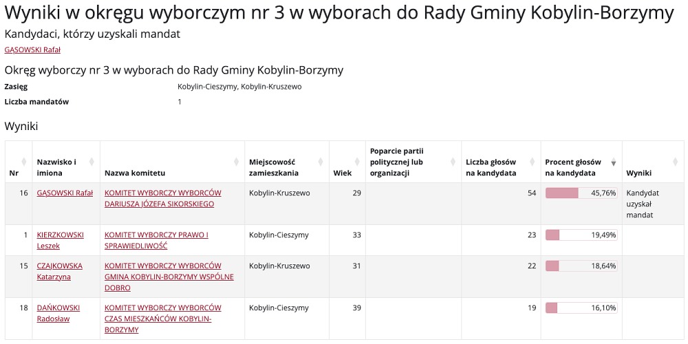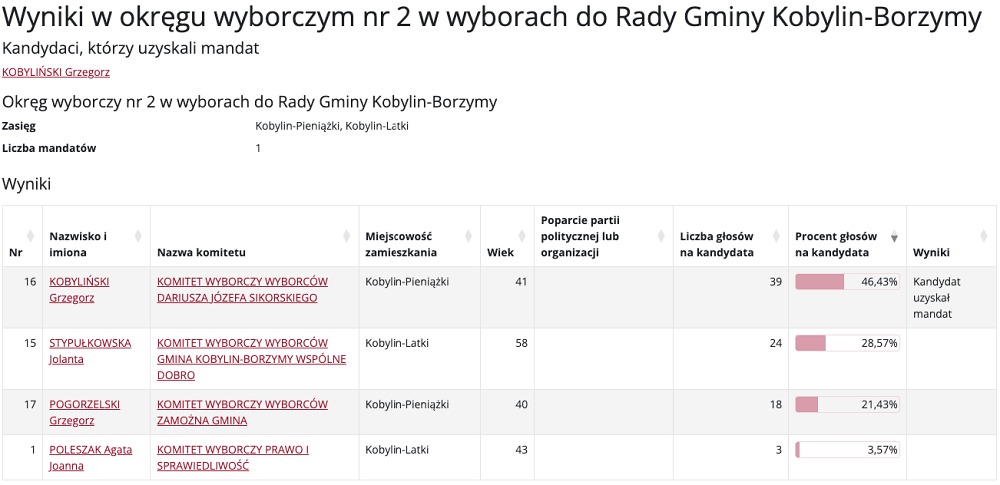 Wybory do Rady Gminy Kobylin-Borzymy przyniosły mieszkańcom nowych przedstawicieli w różnych okręgach wyborczych. Poniżej prezentujemy szczegółowe wyniki głosowania, które wyłoniły nowych radnych.