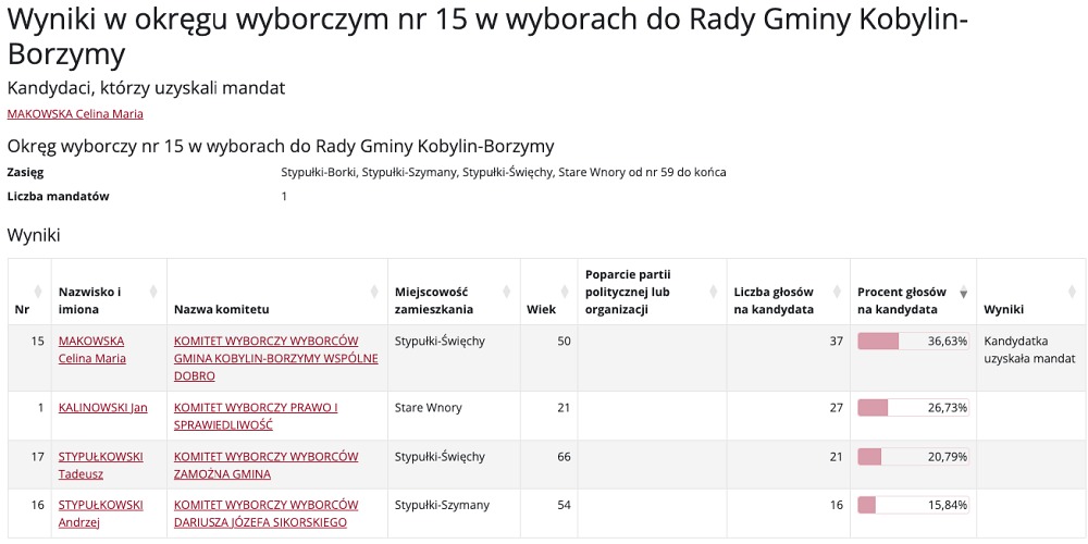 Wyniki w wyborach do Rady Gminy Kobylin-Borzymy