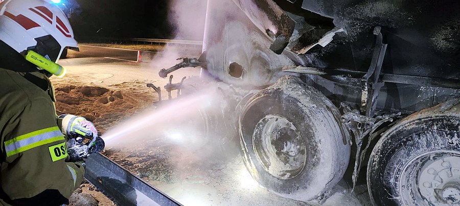 We wtorek (19.11.2024r.) służby ratunkowe interweniowały na drodze ekspresowej S8 w pobliżu miejscowości Kobylin-Kruszewo (gmina Kobylin-Borzymy). Zgłoszenie o pożarze samochodu ciężarowego wpłynęło o godzinie 4:38.