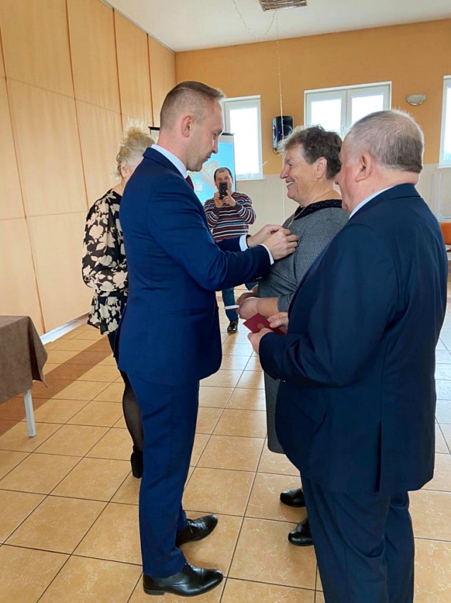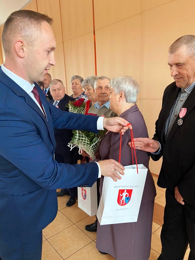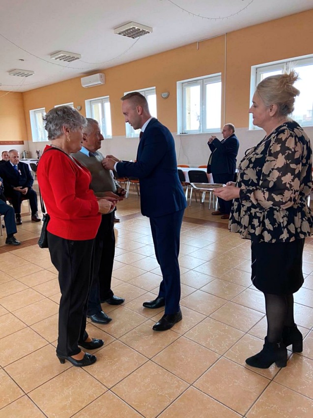 Po nabożeństwie odbyło się spotkanie w Centrum Kulturalno - Edukacyjnym Wsi w Kuleszach Kościelnych, podczas którego Wójt Gminy Kulesze Kościelne Stefan Grodzki wręczył nadane przez Prezydenta Rzeczpospolitej Polskiej medale za Długoletnie Pożycie Małżeńskie. Wójt Gminy złożył serdeczne gratulację oraz życzenia zdrowia, wszelkiej pomyślności i doczekania się kolejnych pięknych jubileuszy.