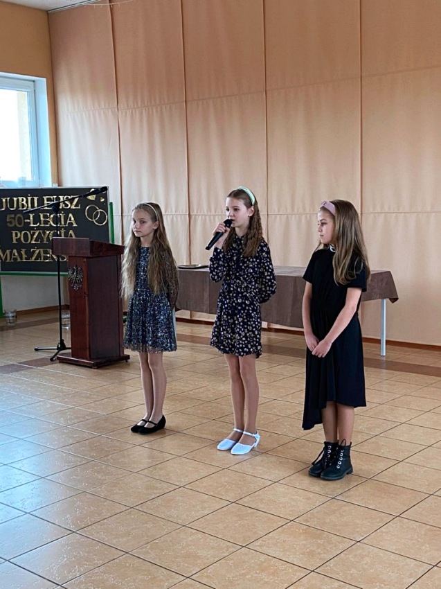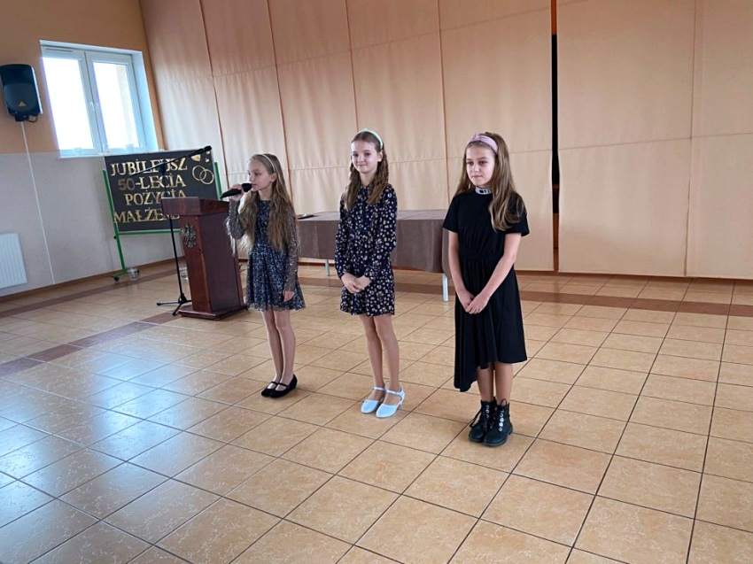 Dzieci ze Szkoły Podstawowej w Kuleszach Kościelnych przygotowały występy artystyczne, recytując dostojnym gościom wierszyki oraz wykonując piosenkę z okazji 50-lecia małżeńskiego.