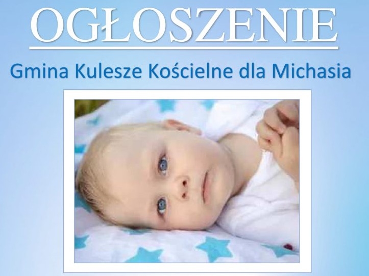 Wójt Gminy Kulesze Kościelne Stefan Grodzki serdecznie zaprasza wszystkich ludzi dobrego serca do wzięcia udziału w akcji charytatywnej na rzecz chorego na SMA typu 1 Michasia Boguckiego.