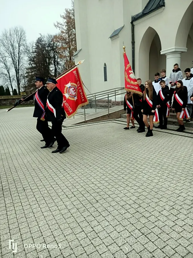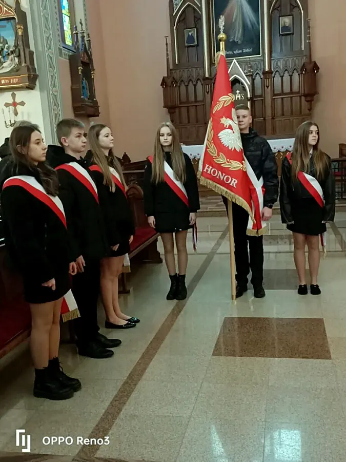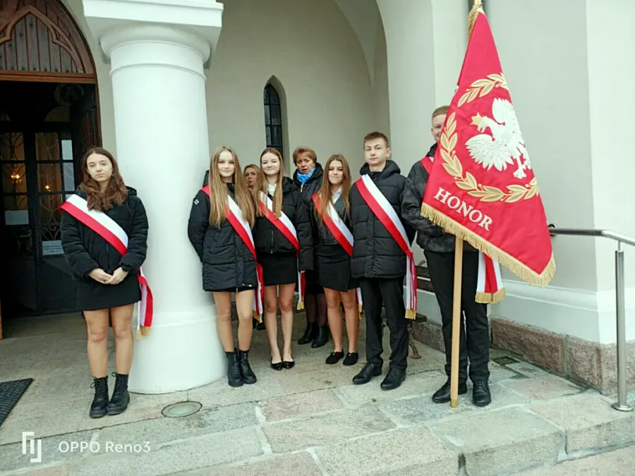 Po zakończeniu Mszy Świętej, uczniowie szkoły przedstawili przygotowaną część artystyczną o charakterze patriotycznym. Następnie zgromadzeni wspólnie odśpiewali hymn państwowy.