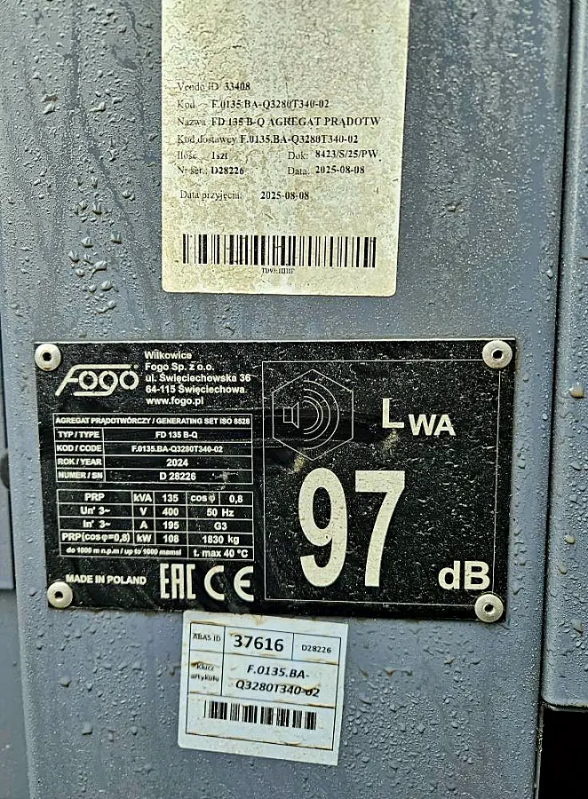 Dostarczony sprzęt to urządzenia wysokiej klasy o znacznej mocy. Do gminy trafił m.in. agregat marki AKMEL typu AP 55 B o mocy 50 kVA. Drugim, znacznie potężniejszym urządzeniem, jest agregat FOGO model FD 135 B-Q, dysponujący mocą 135 kVA i ważący blisko dwie tony. Parametry te pozwalają na pełne podtrzymanie zasilania w obsługiwanych budynkach.