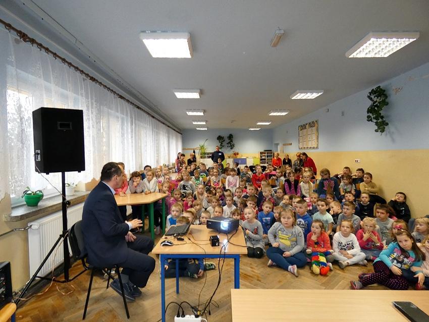 Dzisiaj policjanci z Posterunku Policji w Sokołach, pracownik Wydziały Prewencji wysokomazowieckiej komendy Policji oraz przedstawiciel Kasy Rolniczego Ubezpieczenia Społecznego z Wysokiego Mazowieckiego , w ramach działań profilaktycznych „Bezpieczne Ferie 2018” spotkali się z uczniami Szkoły Podstawowej w Kuleszach Kościelnych. W czasie prelekcji prowadzący spotkanie rozmawiali z dziećmi o bezpieczeństwie podczas zabaw zimowych oraz radzili jak unikać niebezpiecznych sytuacji. Policjanci przypomnieli również zasady bezpieczeństwa w ruchu drogowym oraz mówili o obowiązku używania elementów odblaskowych przez pieszych. Na zakończenie spotkania wszystkie dzieci otrzymały od policjantów odblaski.