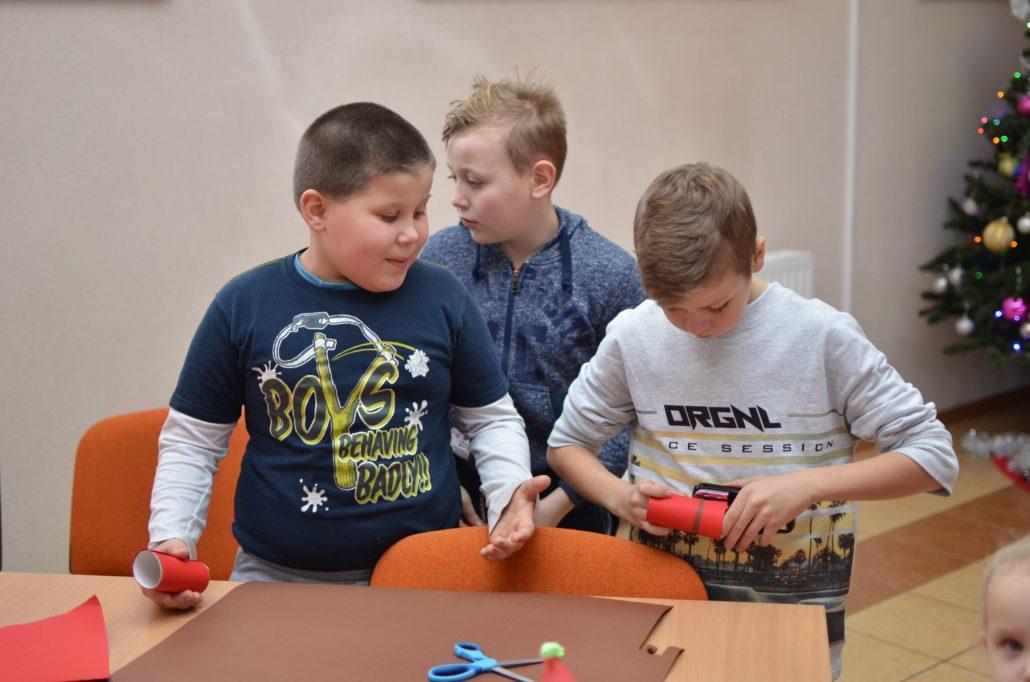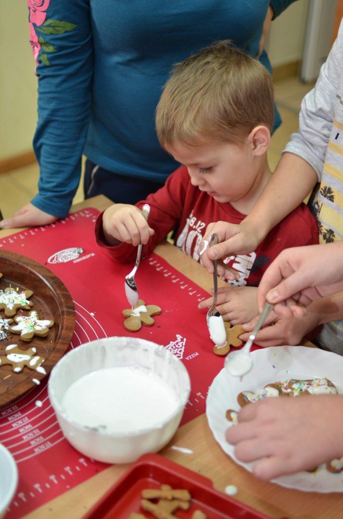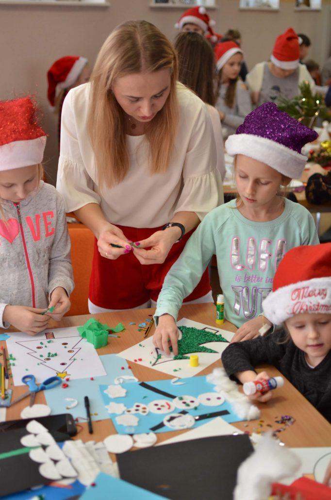 Na warsztatach dzieci mogły wykazać się swoimi umiejętnościami i własnoręcznie zrobić kartki świąteczne, ozdoby choinkowe oraz upiec i udekorować pierniczki. Całemu spotkaniu świątecznej oprawy nadała wizyta Świętego Mikołaj, który obdarował dzieci oraz rodziny miłymi podarkami.