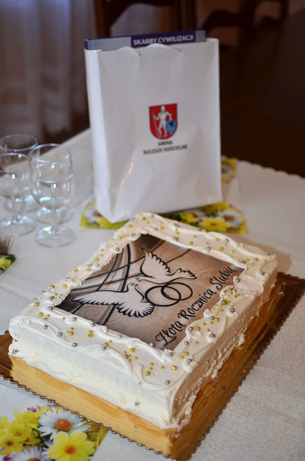 W dalszej części uroczystości małżonkowie obchodzący jubileusz Złotych Godów, księża i zaproszeni goście spotkali się na słodkim poczęstunku w sali parafialnej. Tej niecodziennej i podniosłej atmosferze towarzyszyło dużo ciepłych słów, życzeń , kwiaty, listy gratulacyjne i skromne upominki.