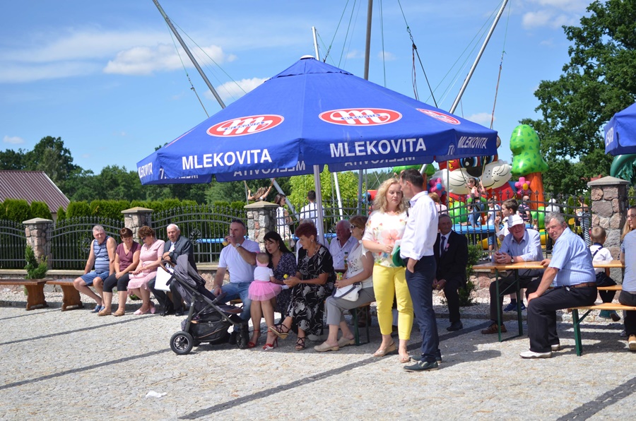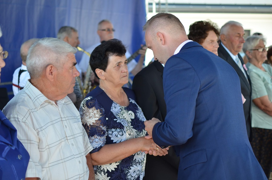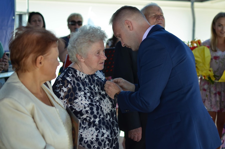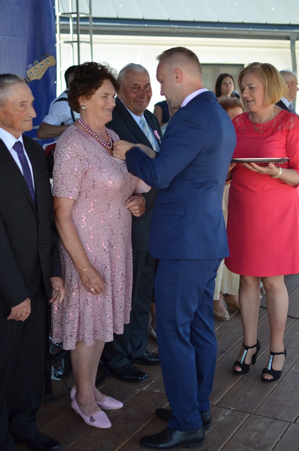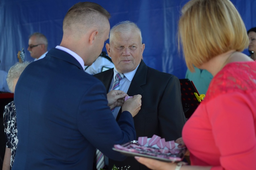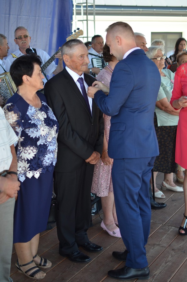 Po mszy świętej wszyscy zgromadzili się na placu parafialnym. Stefan Grodzki Wójt Gminy Kulesze Kościelne w imieniu Prezydenta Rzeczypospolitej Polskiej udekorował dostojnych małżonków medalami „Za Długoletnie Pożycie Małżeńskie”. Złożył też serdeczne gratulacje oraz życzenia długich lat życia w zdrowiu, wszelkiej pomyślności, pogody ducha i doczekania się kolejnych pięknych jubileuszy. W swoim przemówieniu podkreślił wartość rodziny w społeczeństwie.
