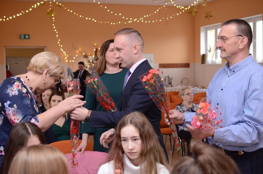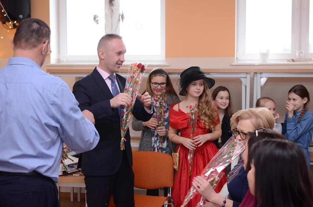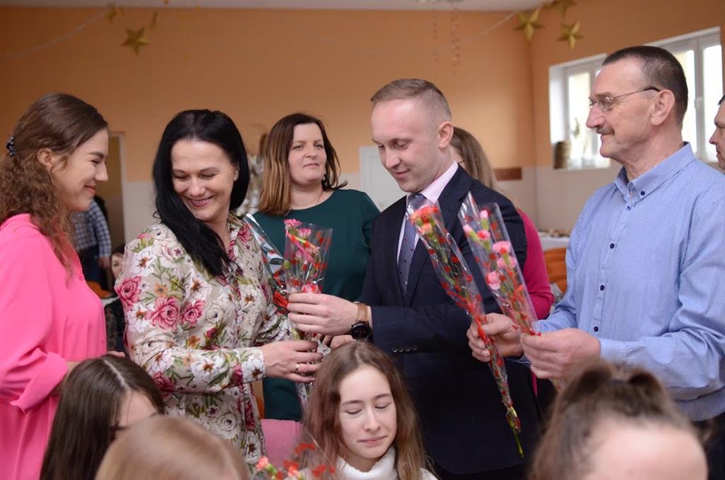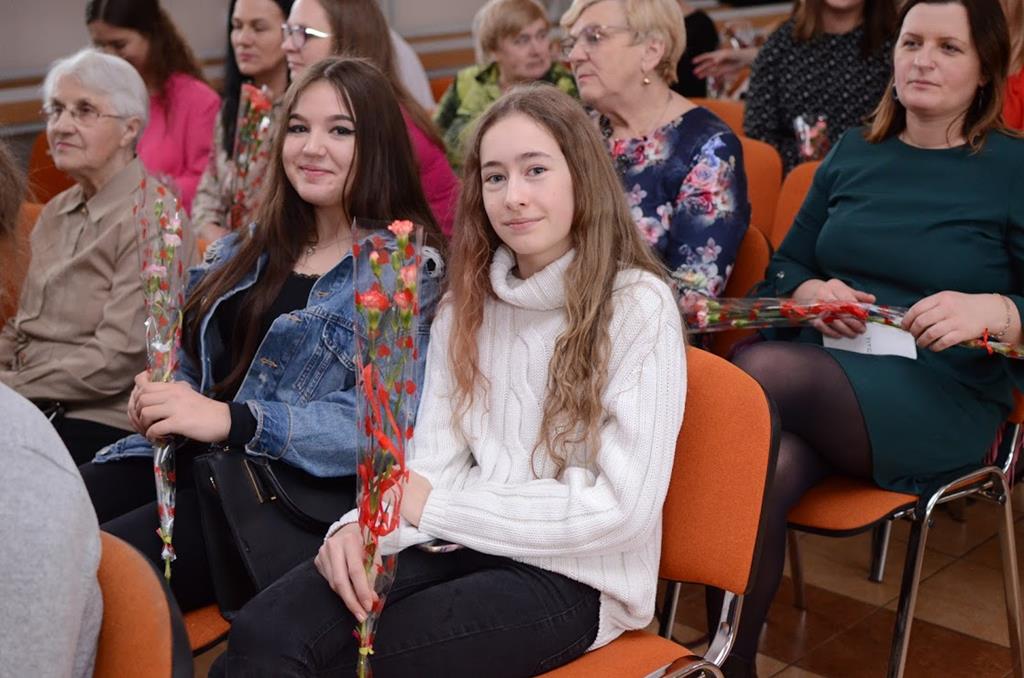 Składanie życzeń, wręczanie kwiatów, słodki poczęstunek oraz występ młodzieży ze Szkoły Podstawowej - tak wyglądały obchody Międzynarodowego Dnia Kobiet w Kuleszach Kościelnych.
