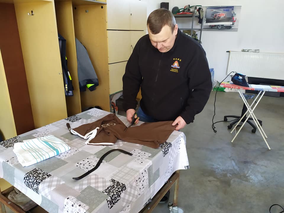 Strażacy z Ochotniczej Straży Pożarnej w Kuleszach Kościelnych sami szyją maski ochronne. Trafią one na użytek druhów.