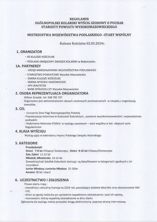 Organizatorem wydarzenia jest Klub Sportowy Kulesze Kościelne przy wsparciu Podlaskiego Okręgowego Związku Kolarskiego w Białymstoku oraz licznych partnerów.