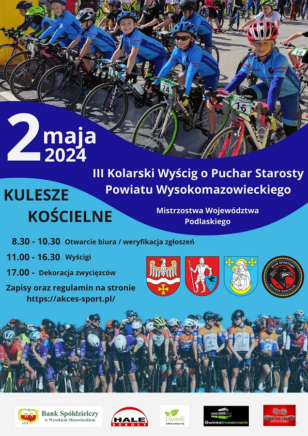 W Kuleszach Kościelnych tradycyjnie majówkowy weekend nabierze sportowego charakteru dzięki nadchodzącemu III Kolarskiemu Wyścigowi o Puchar Starosty Powiatu Wysokomazowieckiego, Mistrzostwa Województwa Podlaskiego. Impreza ta, która odbędzie się 2 maja 2024 roku, po raz kolejny zgromadzi pasjonatów kolarstwa z całego kraju, a także lokalnych miłośników dwóch kółek.