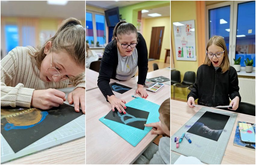 Gminny Ośrodek Kultury w Nowych Piekutach zorganizował zajęcia plastyczne, podczas których najmłodsi mieszkańcy gminy mieli okazję zmierzyć się z tematyką zimową w niecodziennej odsłonie. Warsztaty skupiły się na pracy z kontrastem, światłem oraz perspektywą, a głównym narzędziem twórczym stały się pastele.