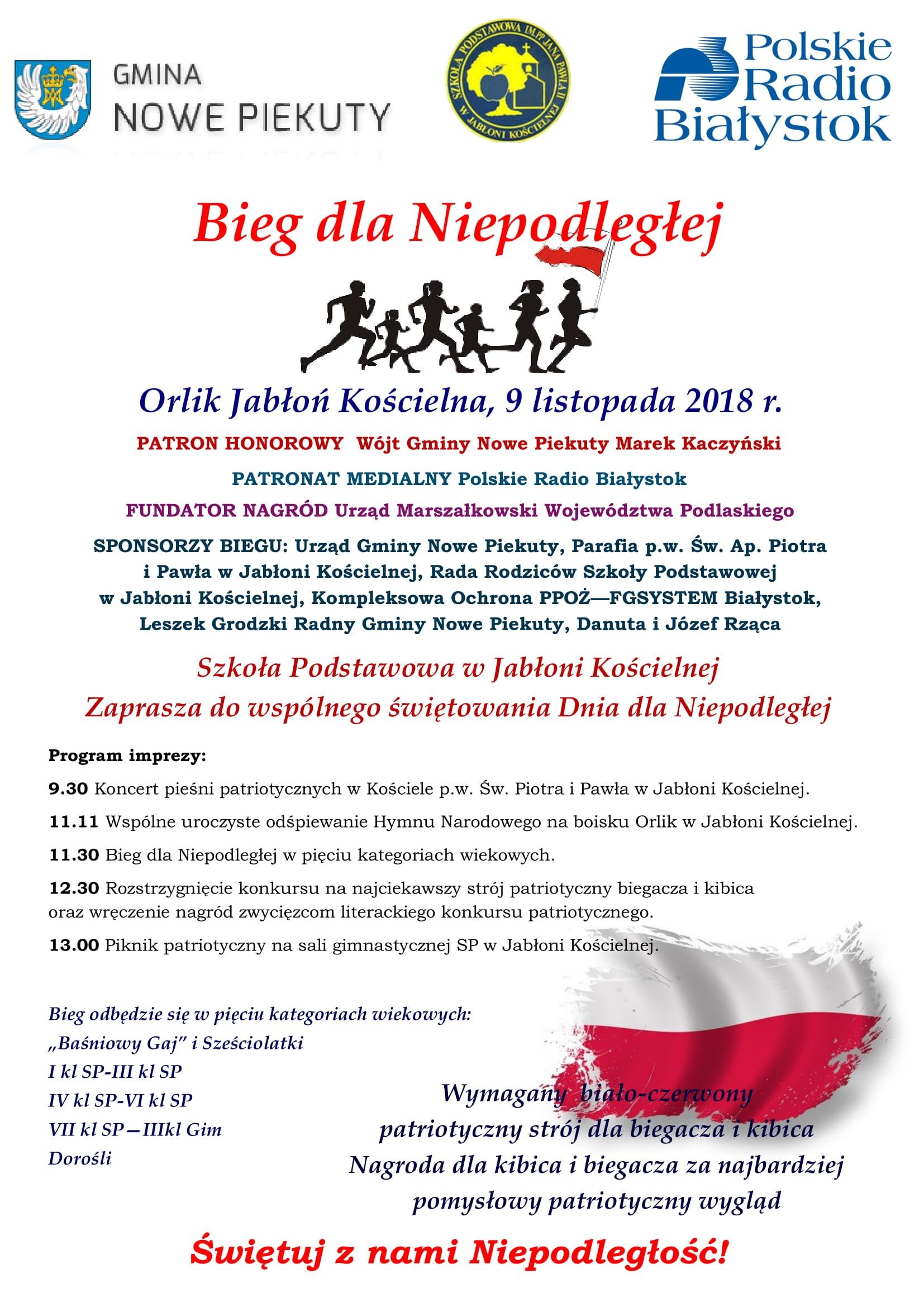 Szkoła Podstawowa im. Jana Pawła II w Jabłoni Kościelnej zaprasza do wspólnego świętowania Dnia dla Niepodległej w piątek, 09.11.2018r.
