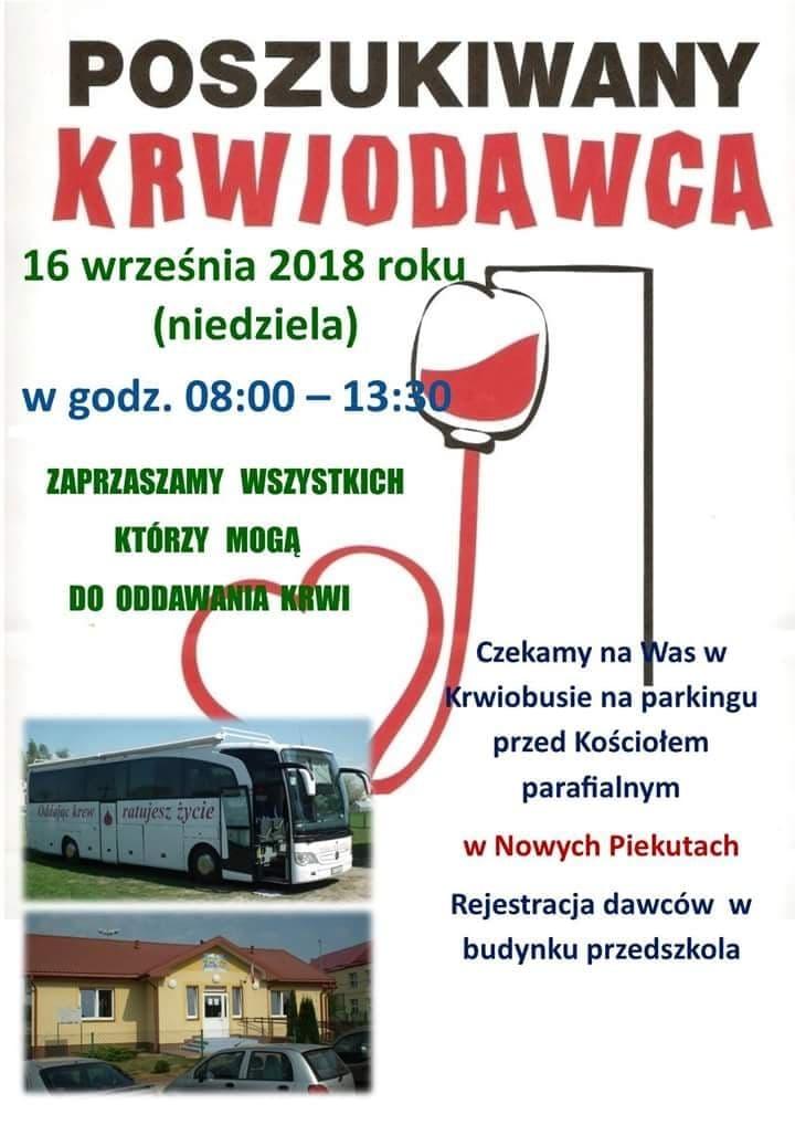 W niedzielę, 16 września w Nowych Piekutach odbędzie się kolejna już akcja krwiodawstwa.