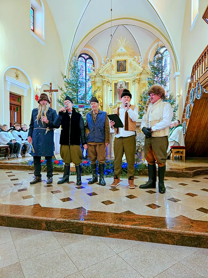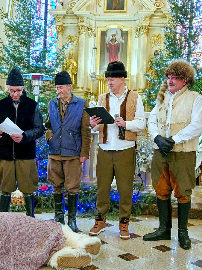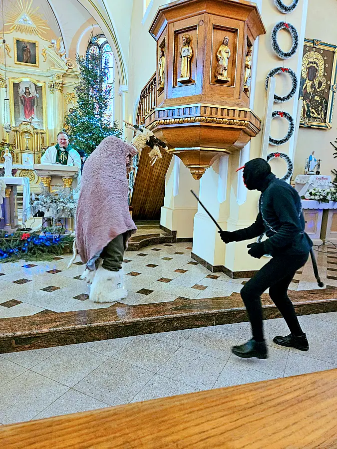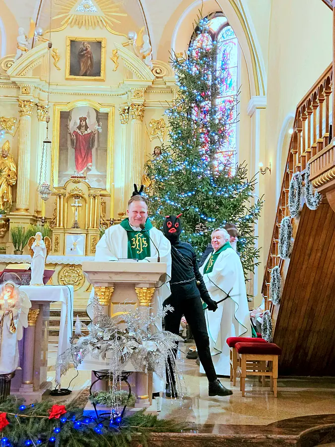 Na kościelnej „scenie” pojawili się pasterze, świta króla Heroda oraz postacie symboliczne. Szczególne emocje i salwy śmiechu wzbudziły sceny z udziałem Diabła oraz wesołej Kozy. Postacie te, dzięki ekspresyjnej grze aktorów i barwnym kostiumom, nadały całemu występowi lekki i ludyczny charakter. Jak relacjonuje parafia, nie zabrakło momentów pełnych humoru, a interakcje między postaciami – w tym sceny z udziałem duchownych przy ołtarzu – pokazały duży dystans i integrującą moc wspólnego świętowania.