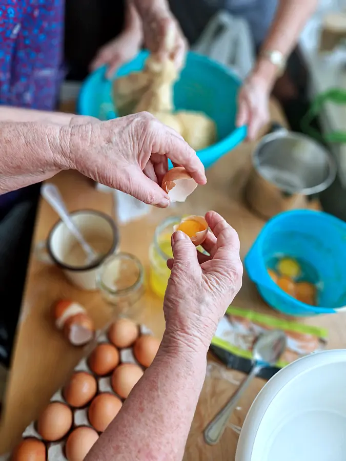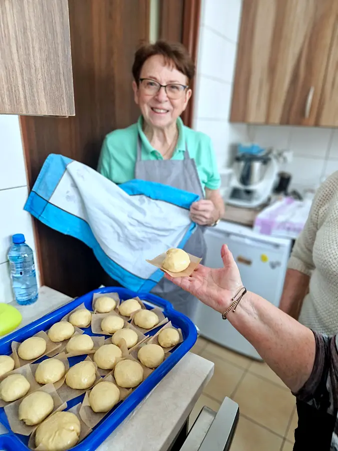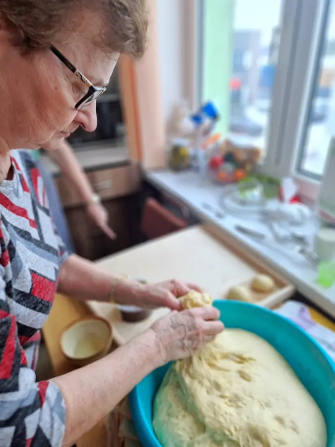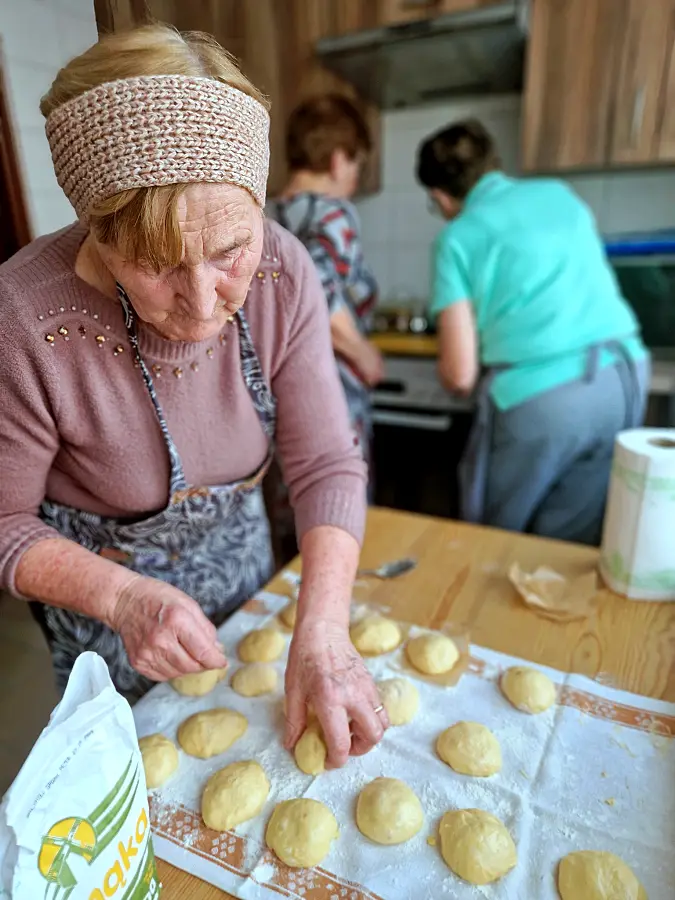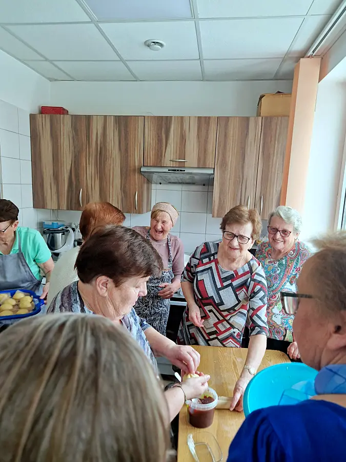Wydarzenie miało charakter warsztatowy i integracyjny, angażując seniorów w cały proces powstawania słodkich przekąsek. Prace rozpoczęły się od przygotowania ciasta. Na stołach pojawiły się niezbędne składniki: mąka, jajka, mleko oraz drożdże. Uczestnicy spotkania podzielili się zadaniami – część osób zajmowała się wyrabianiem ciasta w miskach, inni formowali z niego idealnie okrągłe porcje gotowe do smażenia.