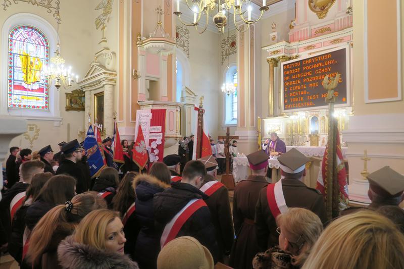 Gospodarzem uroczystości była Szkoła Podstawowa im. Jana Pawła II w Jabłoni Kościelnej. Obchody rozpoczęły się o godz. 11.30 w parafialnym kościele p.w. św. Piotra i Pawła. Na uroczystej mszy zebrali się przedstawiciele władz samorządowych, szkół, mieszkańcy gminy oraz liczne poczty sztandarowe.