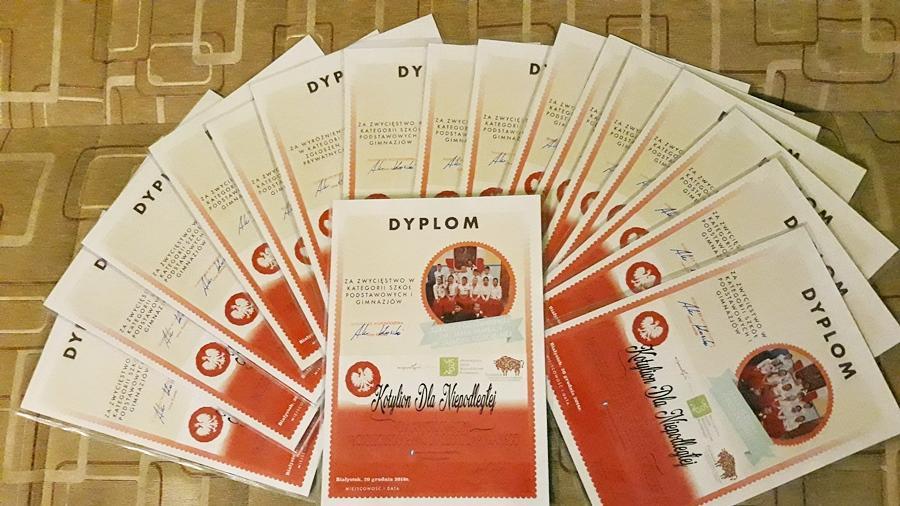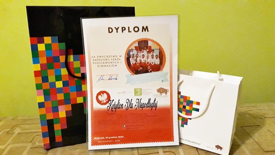Komisja konkursowa doceniła walory artystyczne zdjęcia i formę przekazu miłości do Ojczyzny. 20 grudnia 2018r. odbyło się podsumowanie konkursu. Na uroczystej gali rozdania nagród w Urzędzie Marszałkowskim Województwa Podlaskiego odebraliśmy nagrody za zajęcie pierwszego miejsca w kategorii szkół podstawowych i gimnazjów. Zostaliśmy zauważeni wśród ponad 70 zgłoszeń. Jesteśmy dumni i szczęśliwi!