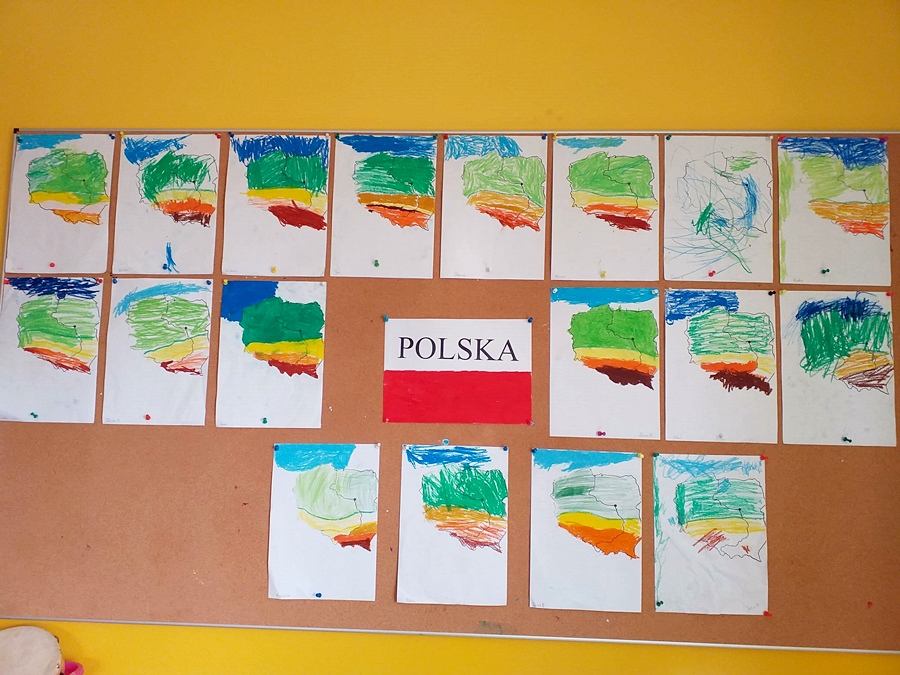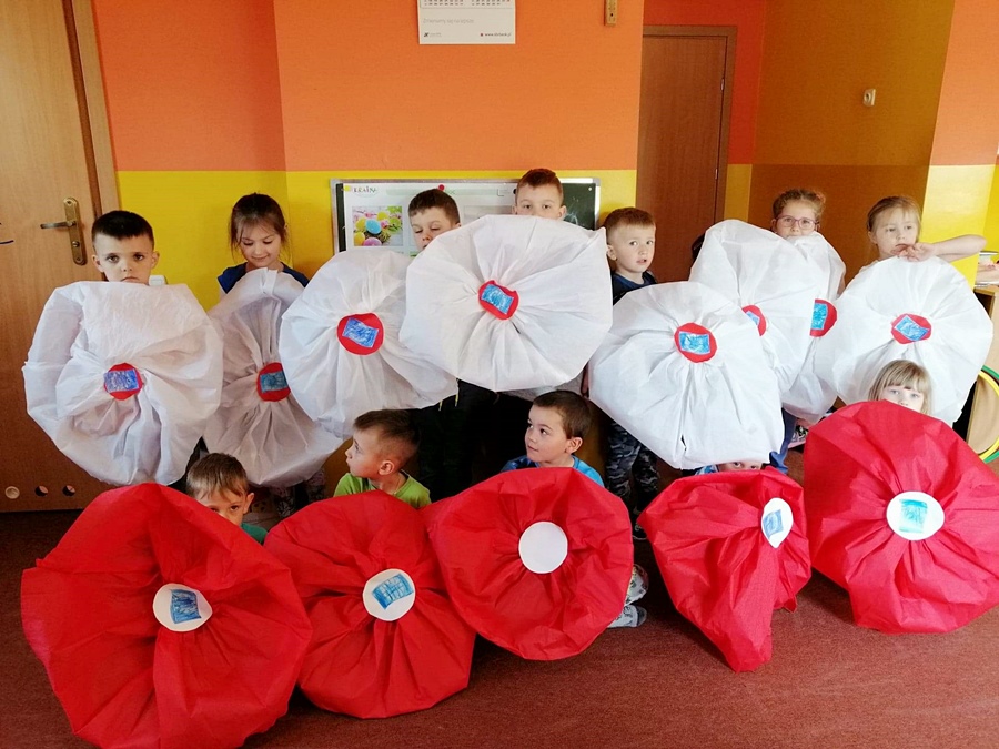 Najmłodsze dzieci poznawały podczas zajęć Polskę, jej walory oraz symbole narodowe. Postanowiły zachęci mieszkańców do wywieszenia flagi poprzez ozdobienie budynku przedszkola, oczywiście w barwach narodowych.