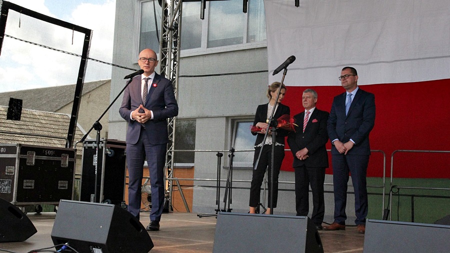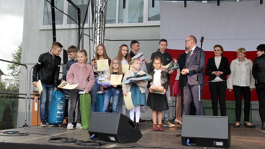 Dalsza część uroczystości odbyła się na placu szkolnym. Zgromadzonych gości powitał Wójt Gminy – Marek Kaczyński oraz Dyrektor Szkoły - Andrzej Olędzki. Następnie wręczono Złote Jabłko – odznaczenie dla szczególnie zasłużonych dla naszej lokalnej społeczności. W tym roku odznaczenie to otrzymało Starostwo Powiatowe w Wysokiem Mazowieckiem, nagrodę Złotego Jabłuszka dla najsympatyczniejszego ucznia szkoły otrzymał Kacper Jabłoński- uczeń kl. VIII. Wręczono również nagrody w konkursie fotograficznym „Piękno Ziemi Podlaskiej w obiektywie mieszkańców Gminy Nowe Piekuty”. Nie zabrakło też licznych atrakcji, t.j: występu zespołu ”Swojskie Melodie” z Nowych Piekut, pokaz Zumby pod kierunkiem Justyny Troc, taniec Zombie w wykonaniu młodszych uczniów szkoły, pokaz magii, Turniej Rodzin, mecz piłki nożnej, a także liczne atrakcje dla najmłodszych. Pomimo dość chłodnej pogody wszyscy bawili się doskonale, zwłaszcza podczas żywiołowego koncertu Zespołu „Piekut Band”, który zakończył festyn w Jabłoni Kościelnej.